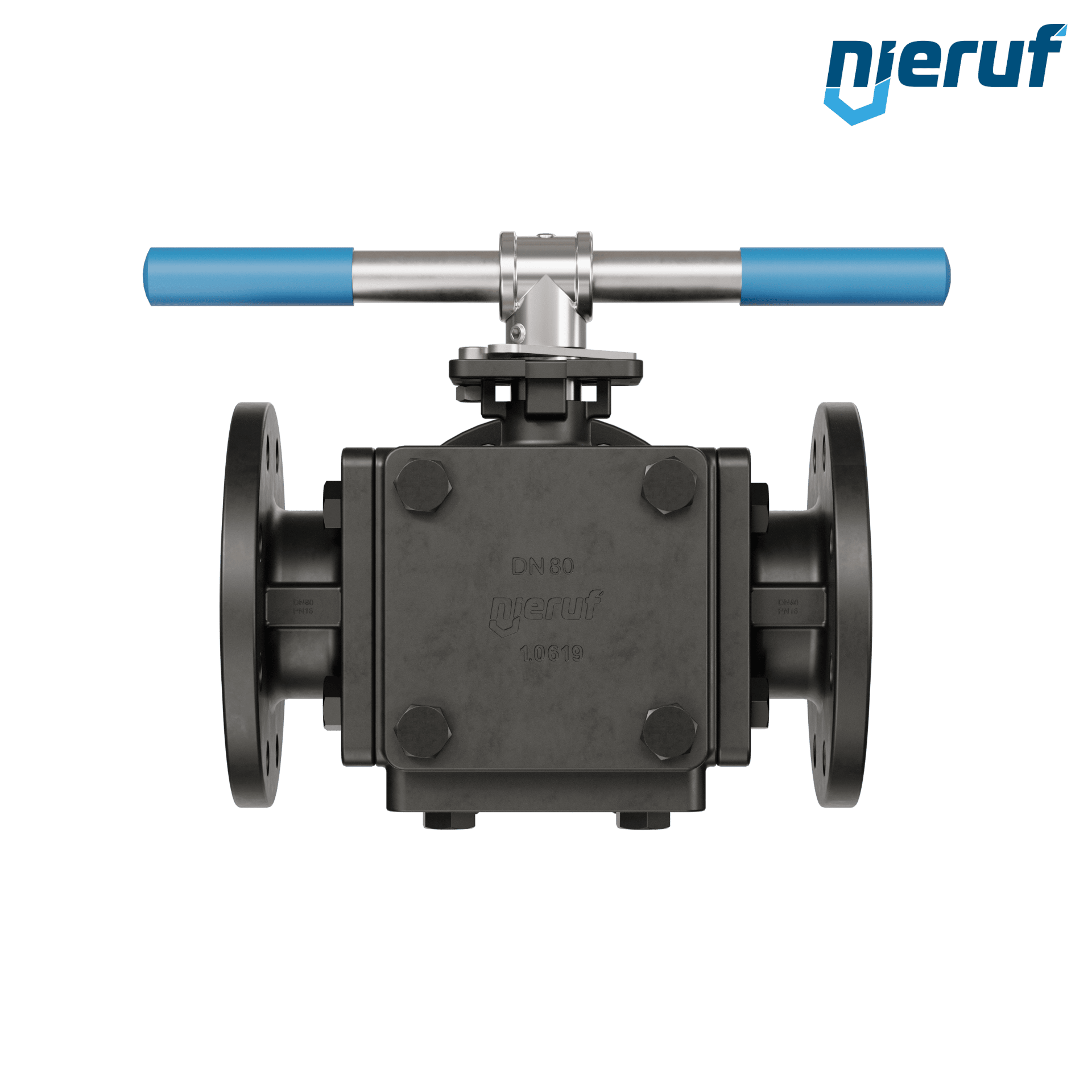 Three-way flange ball valve DN80 FK08 L Drilling carbon steel 1.0619