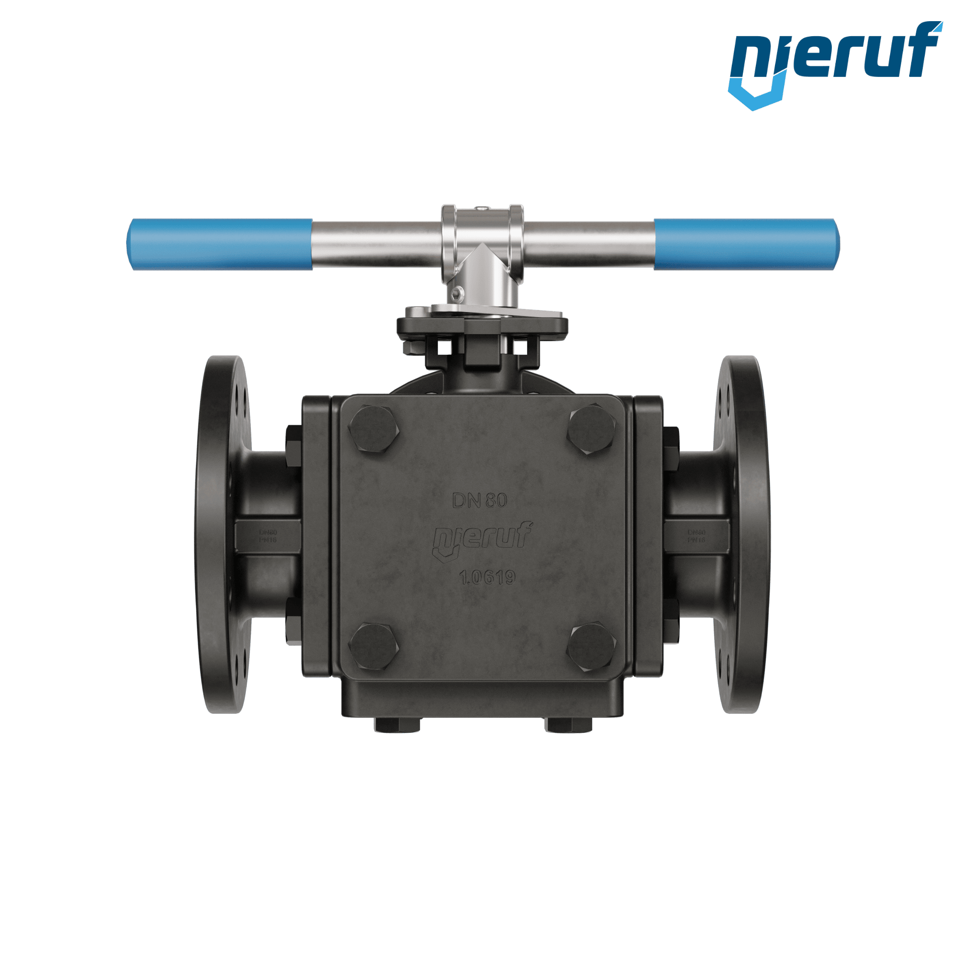 Three-way flange ball valve DN80 FK08 T drilling carbon steel 1.0619