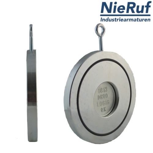 swing check valve DN80 PN 10/16/25/40 DIN EN 1092-1 Form B made of stainless steel A351 CF8M seal metall for liquid and gaseous media