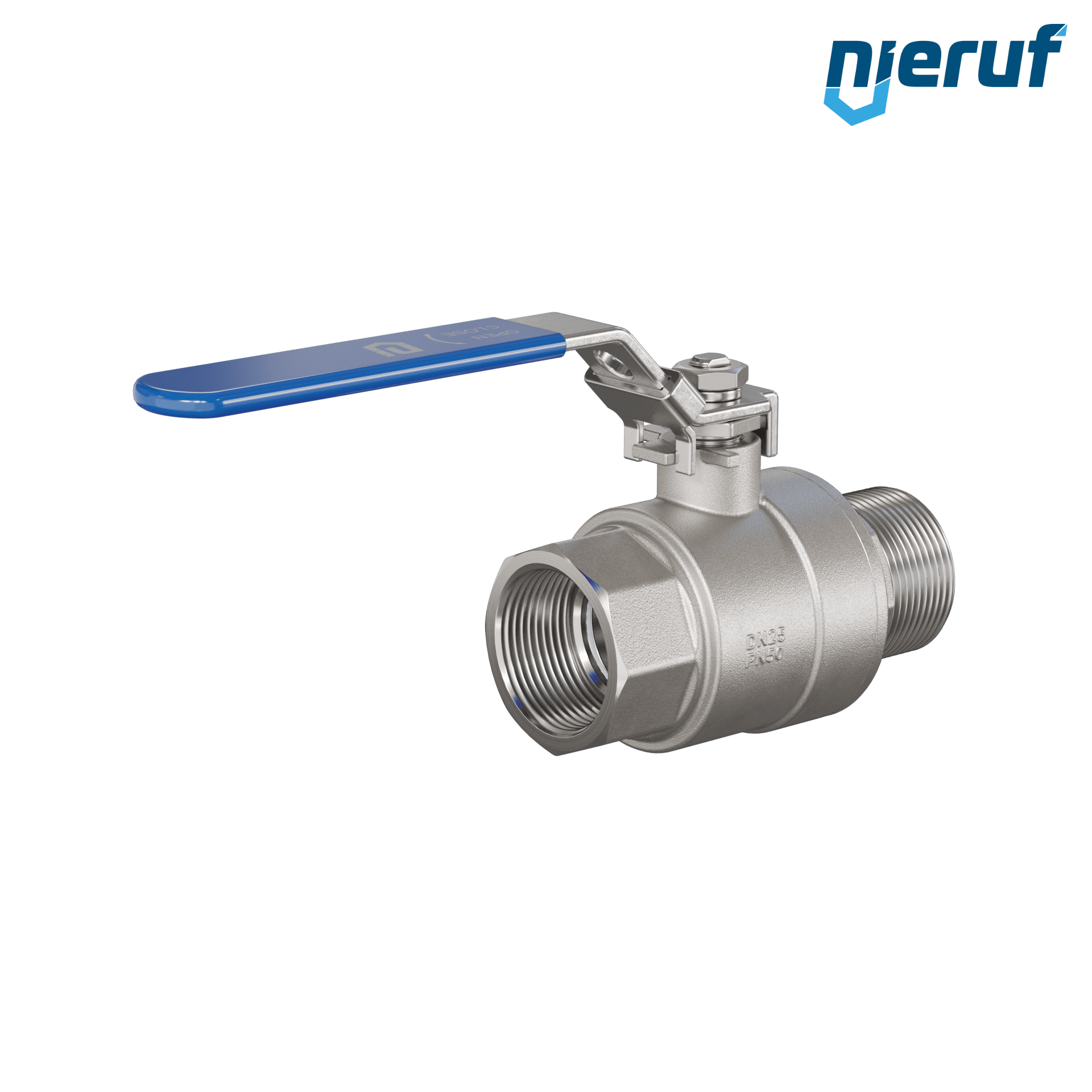This high quality ball valve is made of stainless steel. This two-piece ball valve hase a male and a female thread connection.
