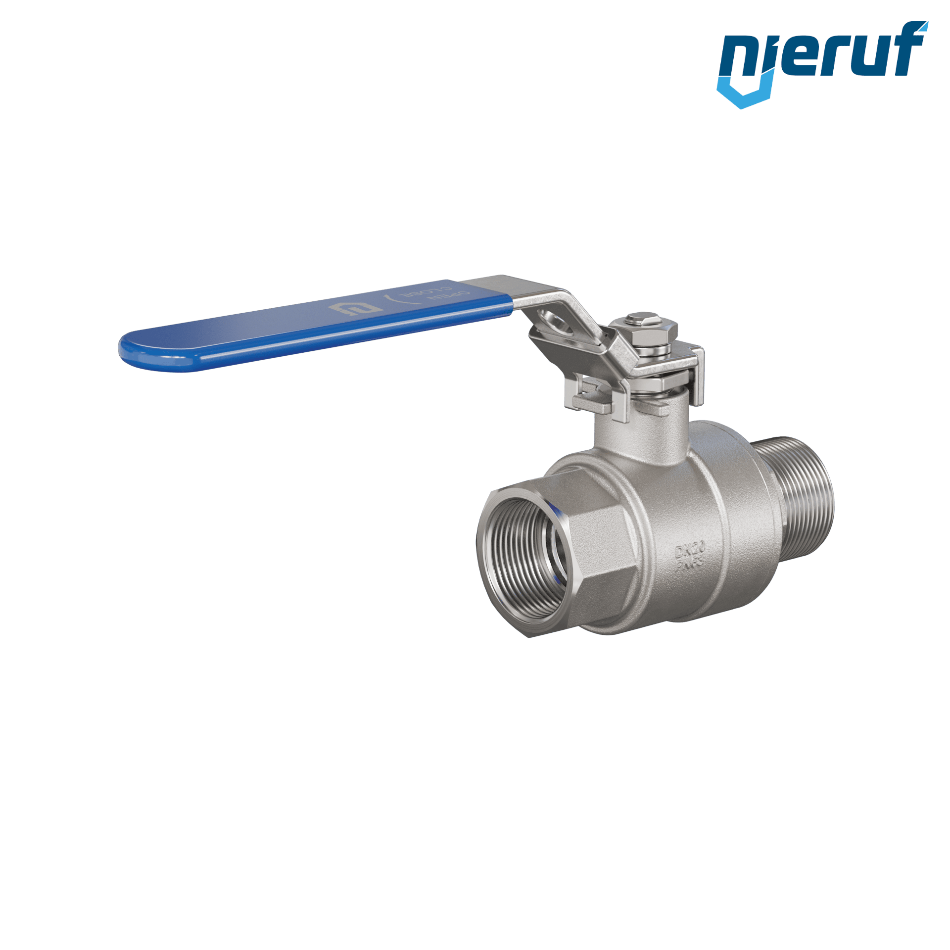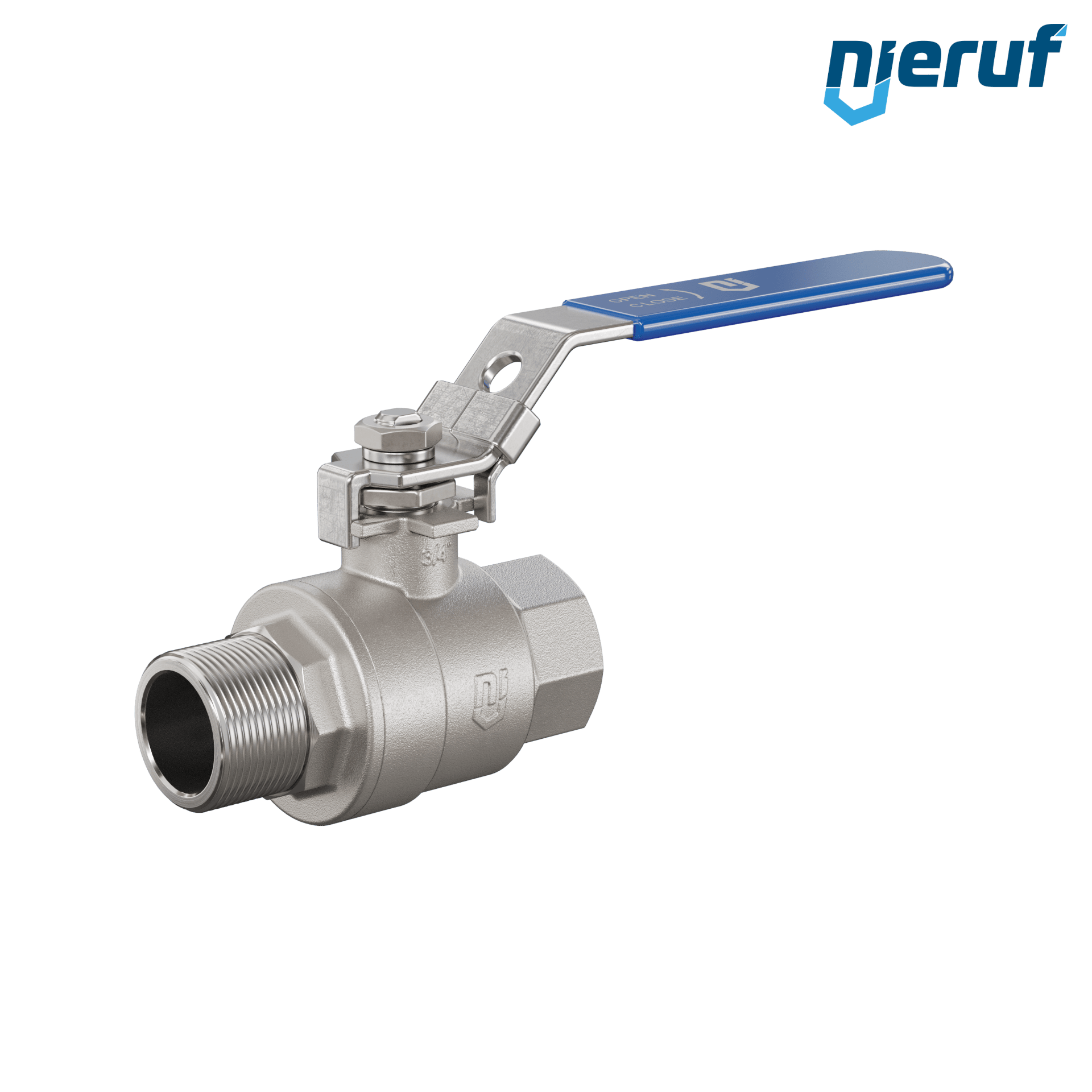 This high quality ball valve is made of stainless steel. This two-piece ball valve hase a male and a female thread connection.