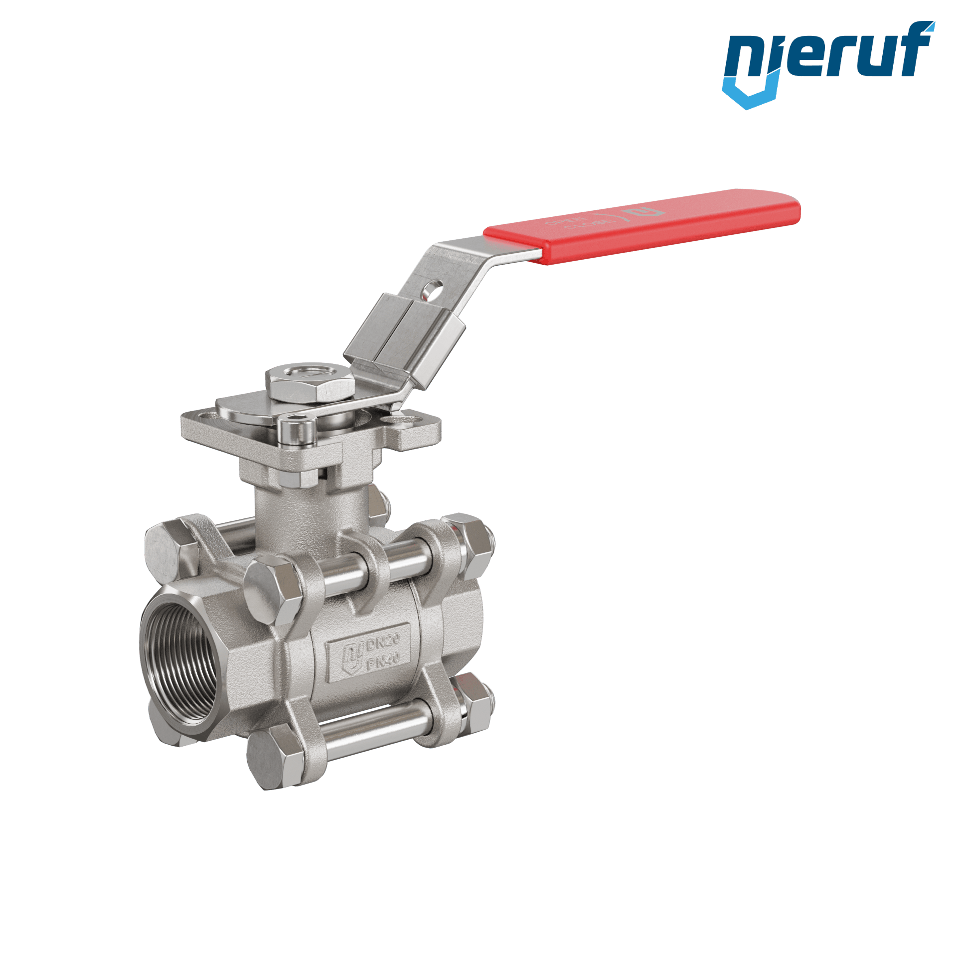 three-pieces 2-way ball valve GK20 with ISO 5211 mounting flange made of stainless steel 1.4408 DN20 - 3/4" inch female thread NPT for liquid and gaseous media