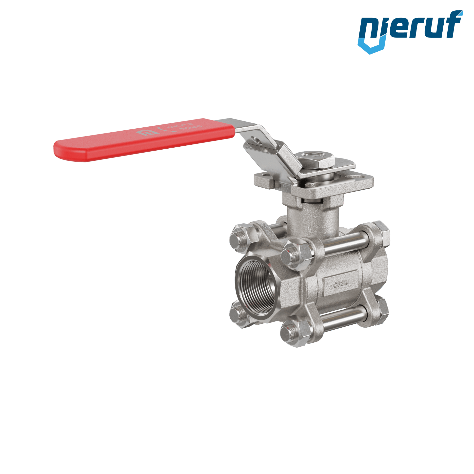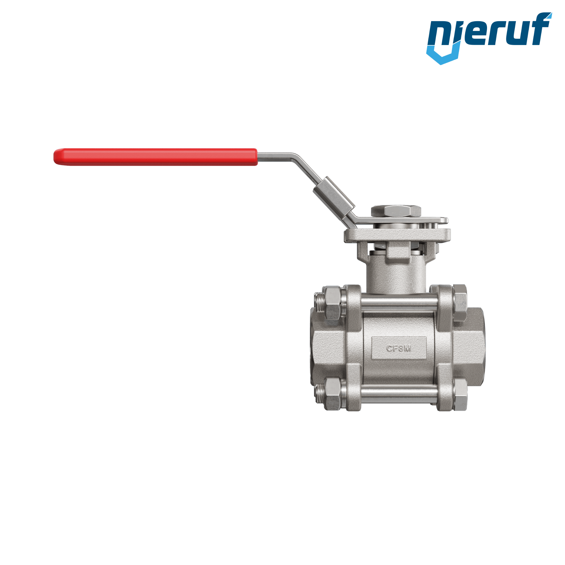 This ball valve is made of stainless steel consists of a three-piece body, blow out proof stem design, locking device and antistatic device. With mounting flange according to DIN ISO 5211 and lever handle made of stainless steel. To shut off pipeline systems.