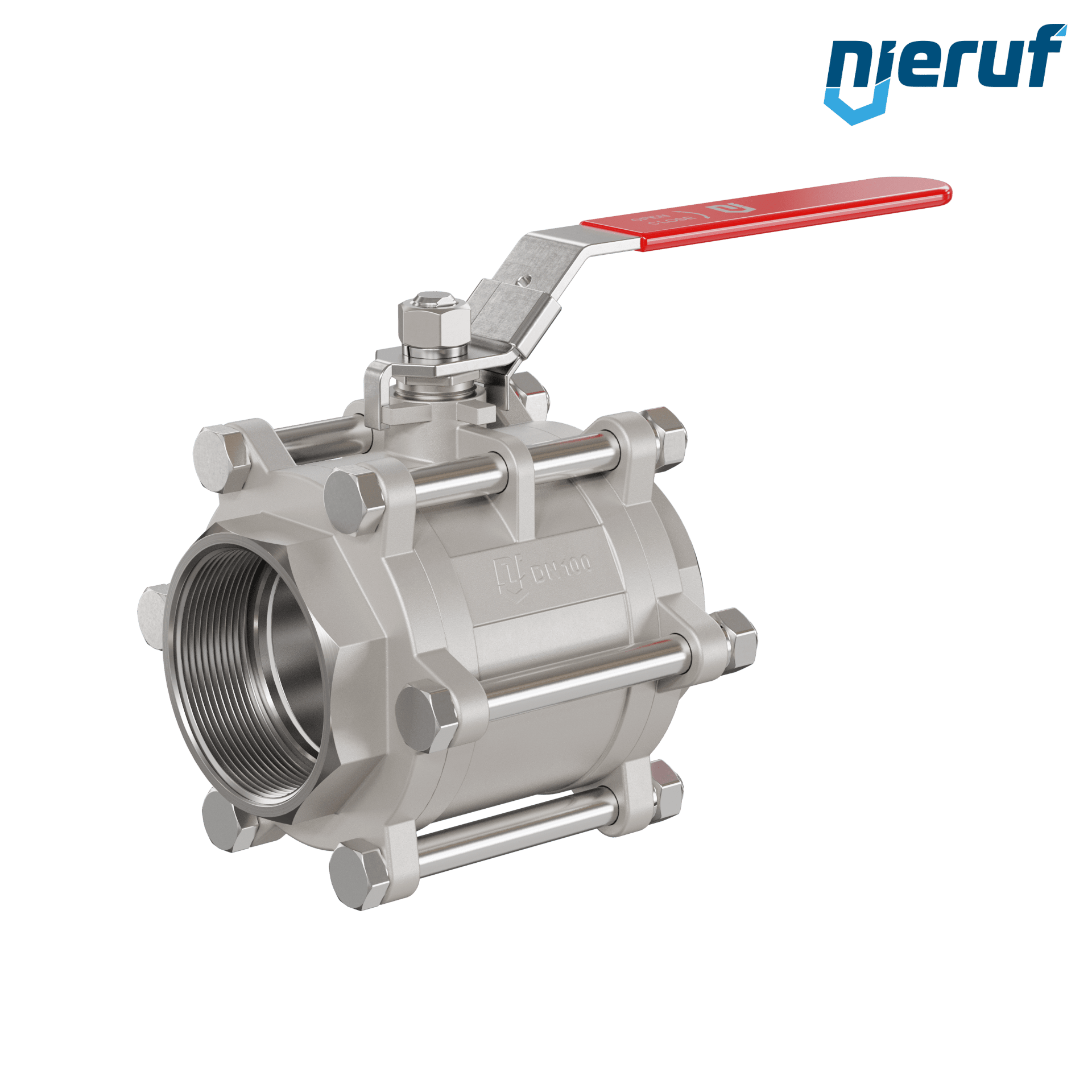 three-pieces 2-way ball valve made of stainless steel 1.4408 DN100 - 4" inch female thread for liquid and gaseous media