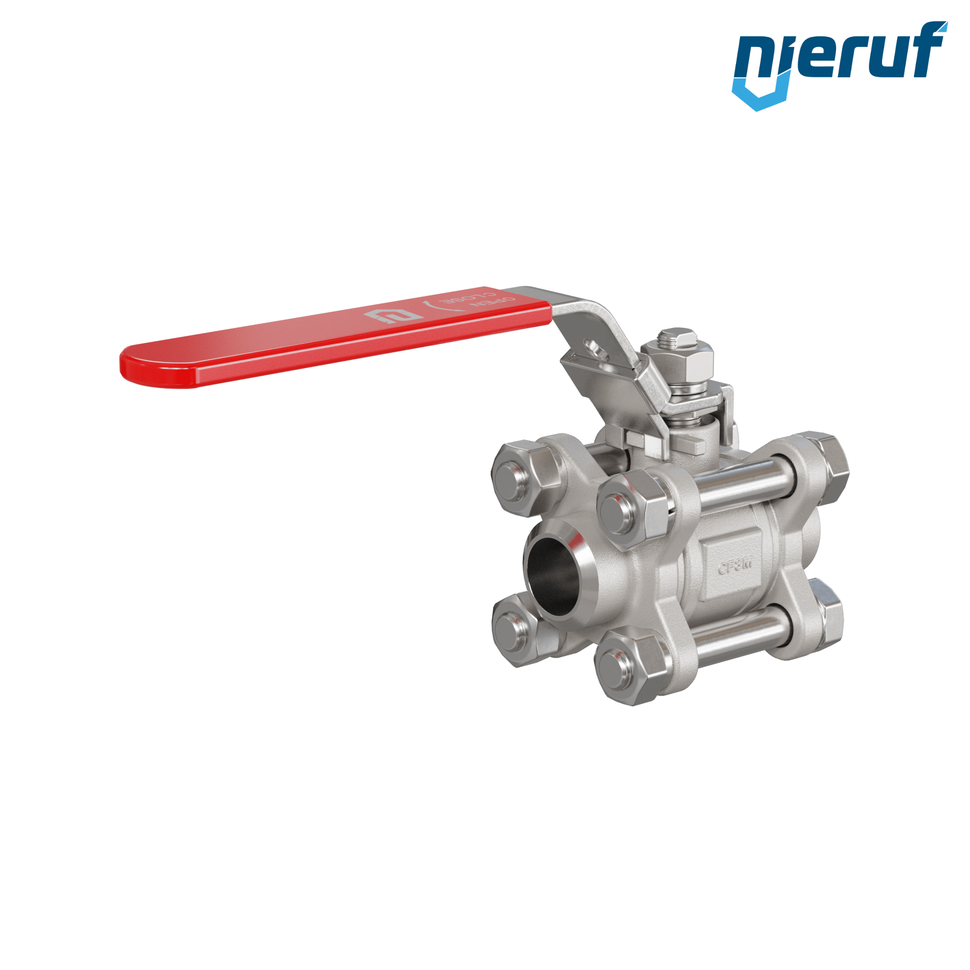 three-pieces 2-way ball valve made of stainless steel 1.4408 DN15 - 1/2" inch butt welding for liquid and gaseous media