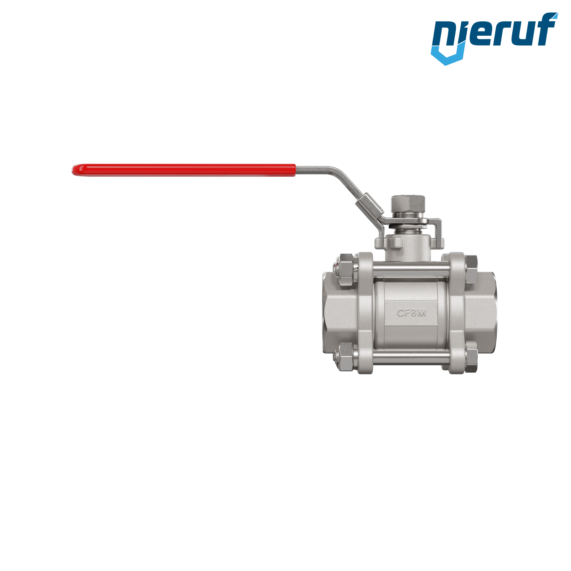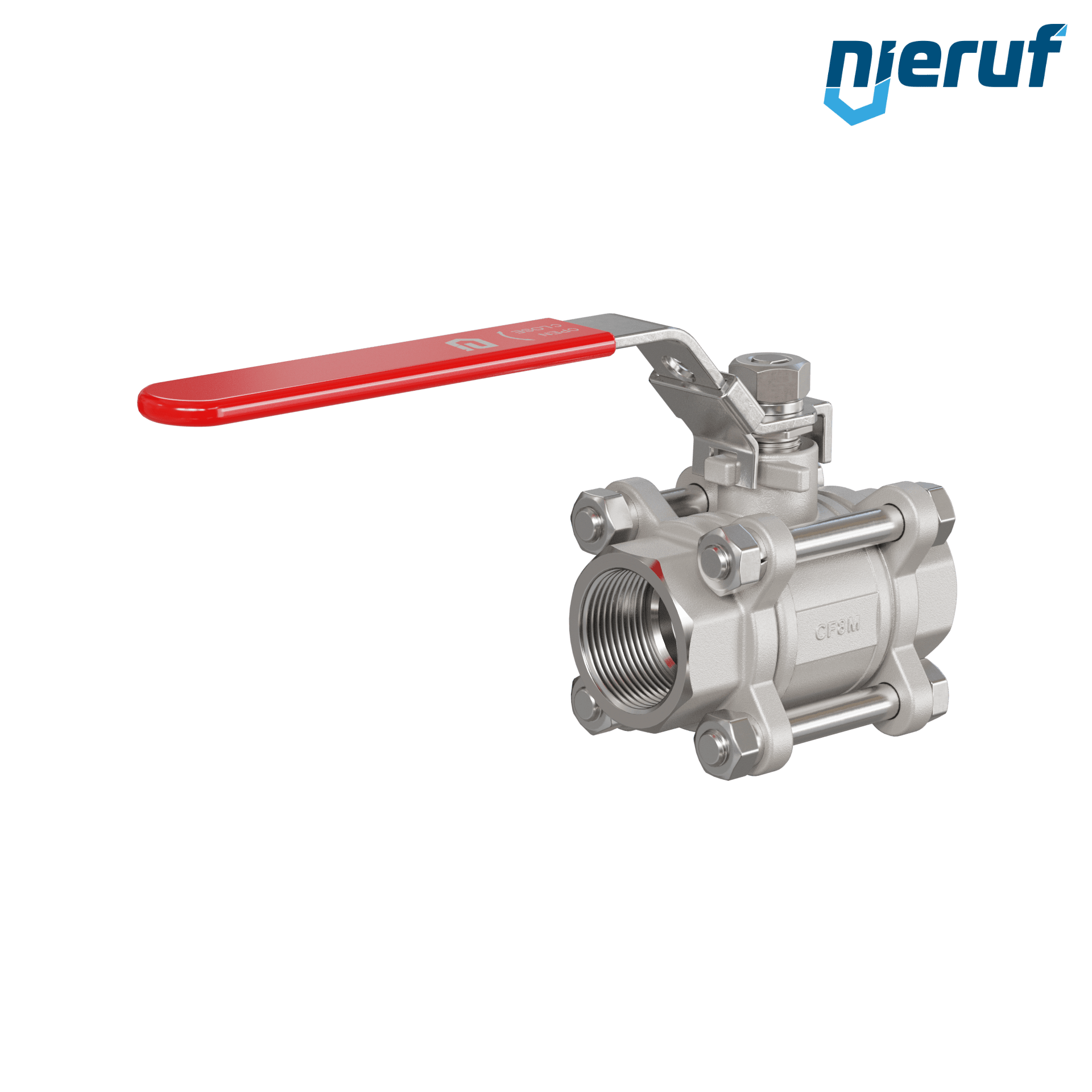 three-pieces 2-way ball valve made of stainless steel 1.4408 DN25 - 1" inch female thread for liquid and gaseous media