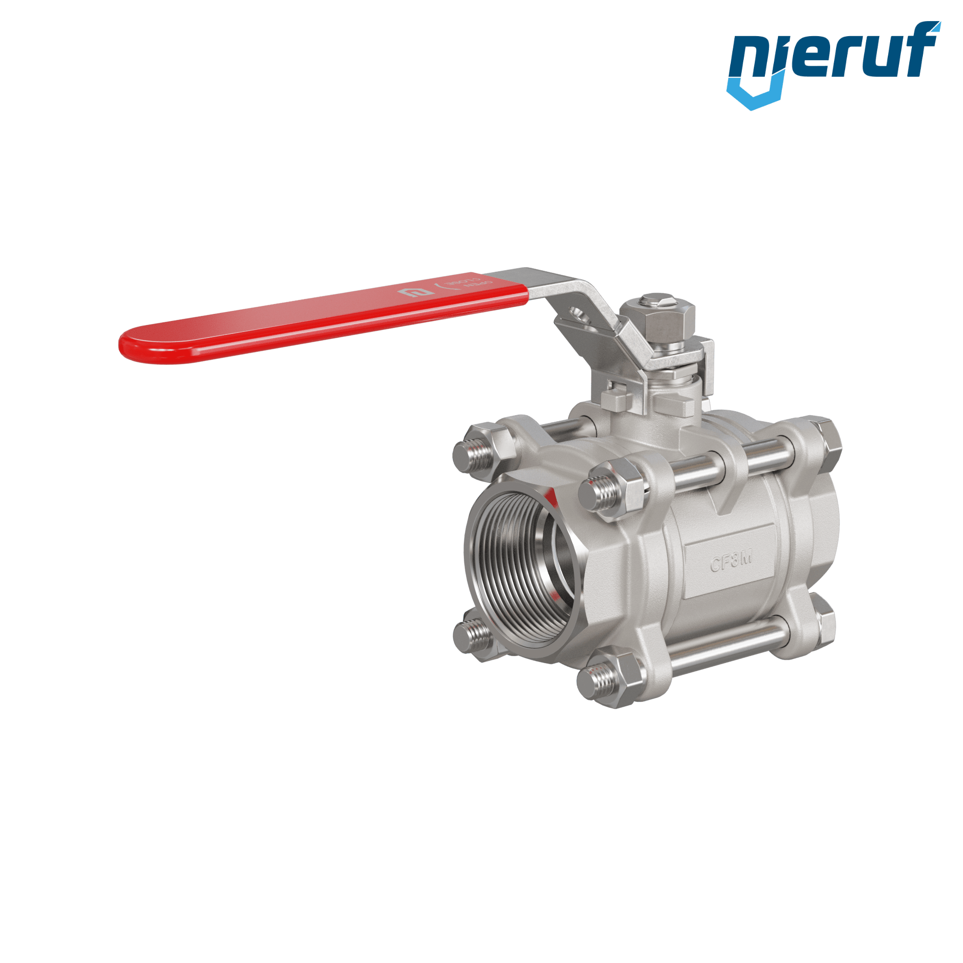 three-pieces 2-way ball valve made of stainless steel 1.4408 DN40 - 1 1/2" inch female thread for liquid and gaseous media