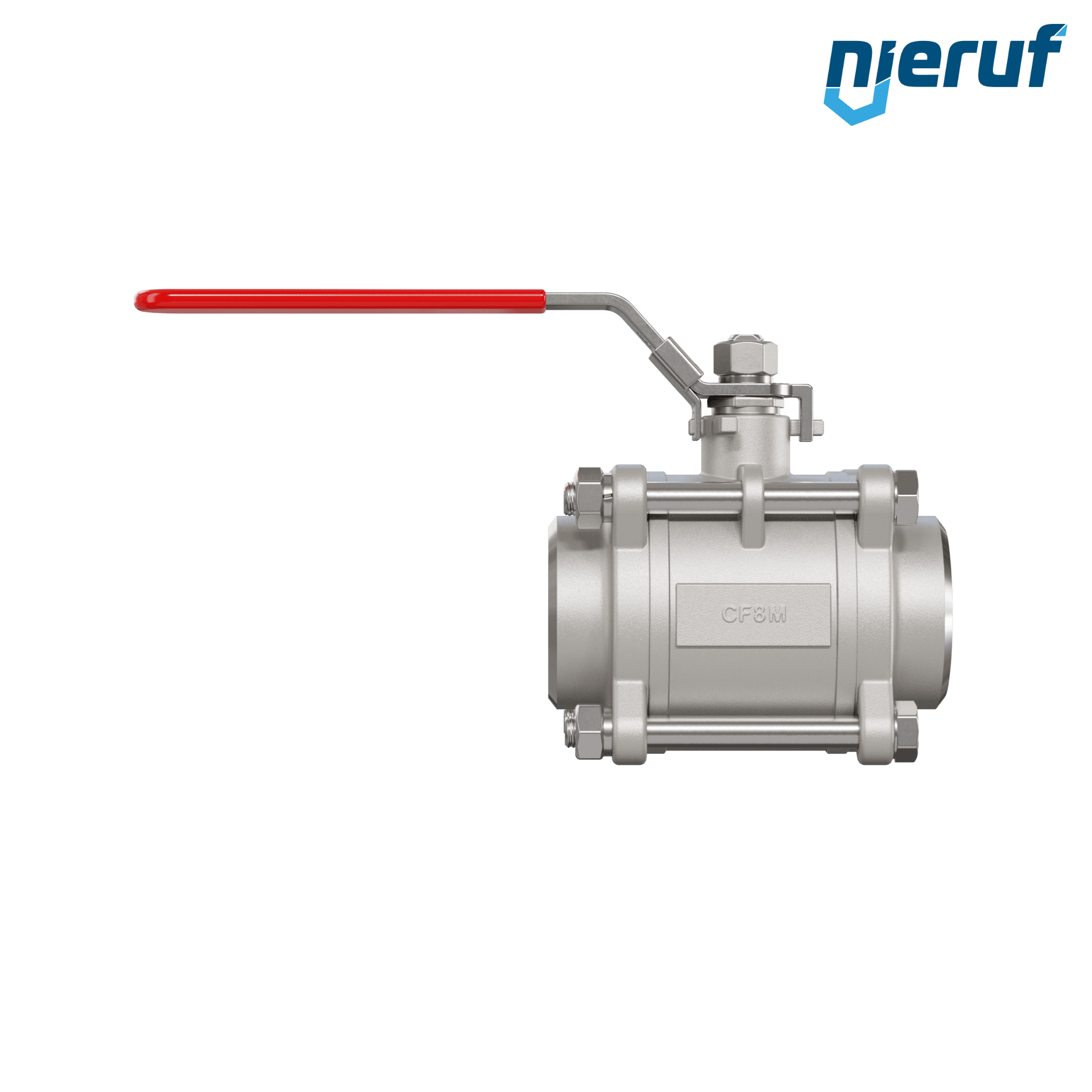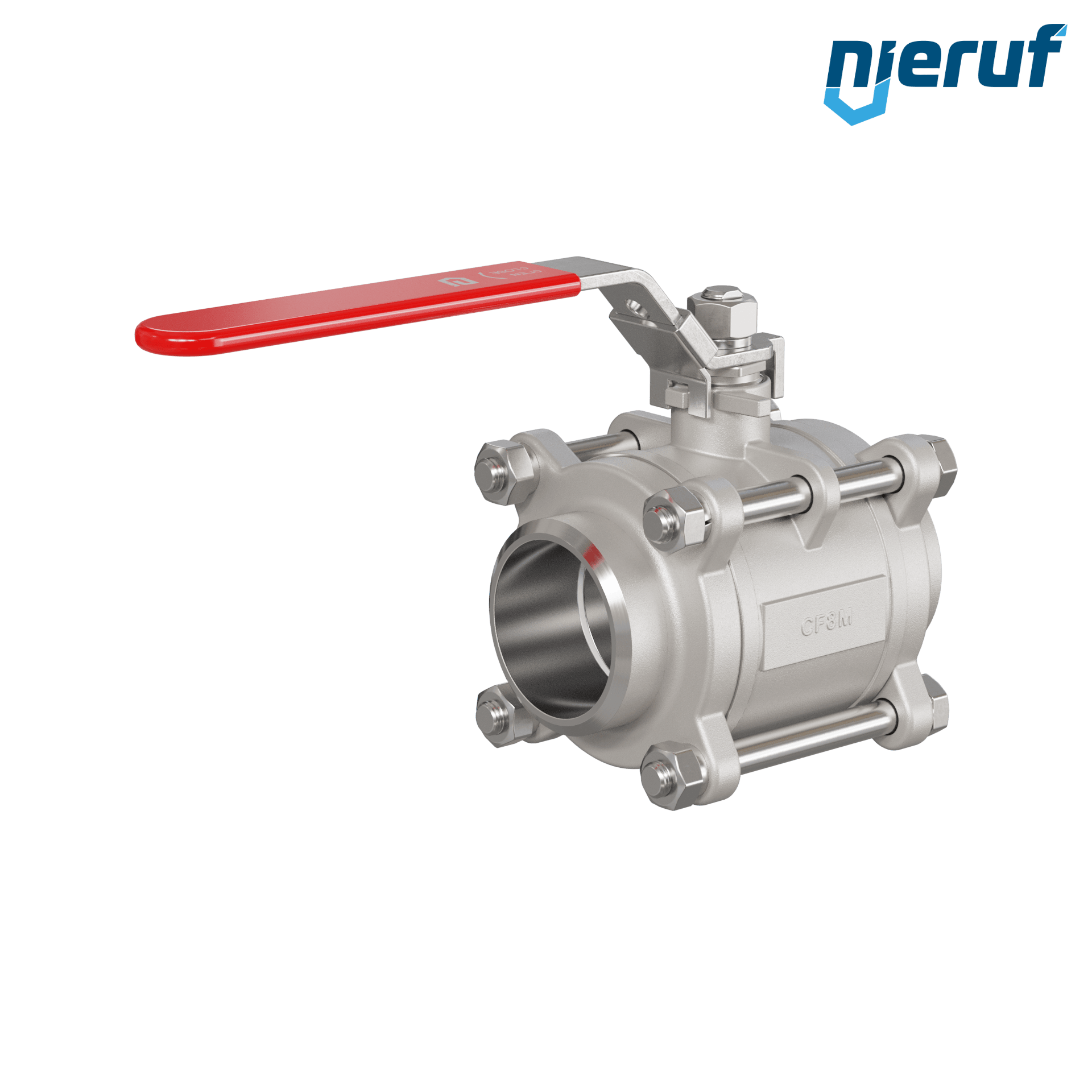three-pieces 2-way ball valve made of stainless steel 1.4408 DN50 - 2" inch butt welding for liquid and gaseous media