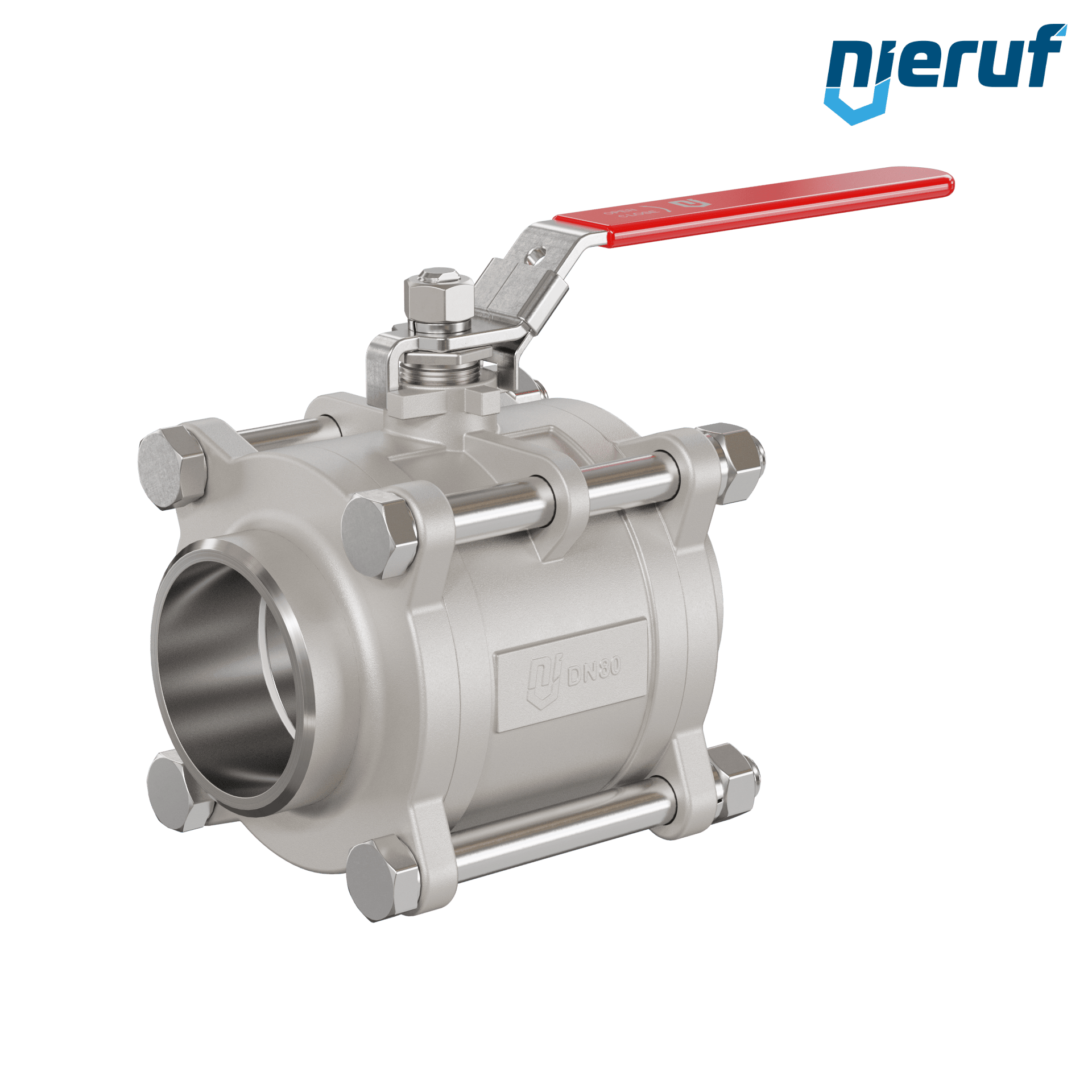 three-pieces 2-way ball valve made of stainless steel 1.4408 DN80 - 3" inch butt welding for liquid and gaseous media