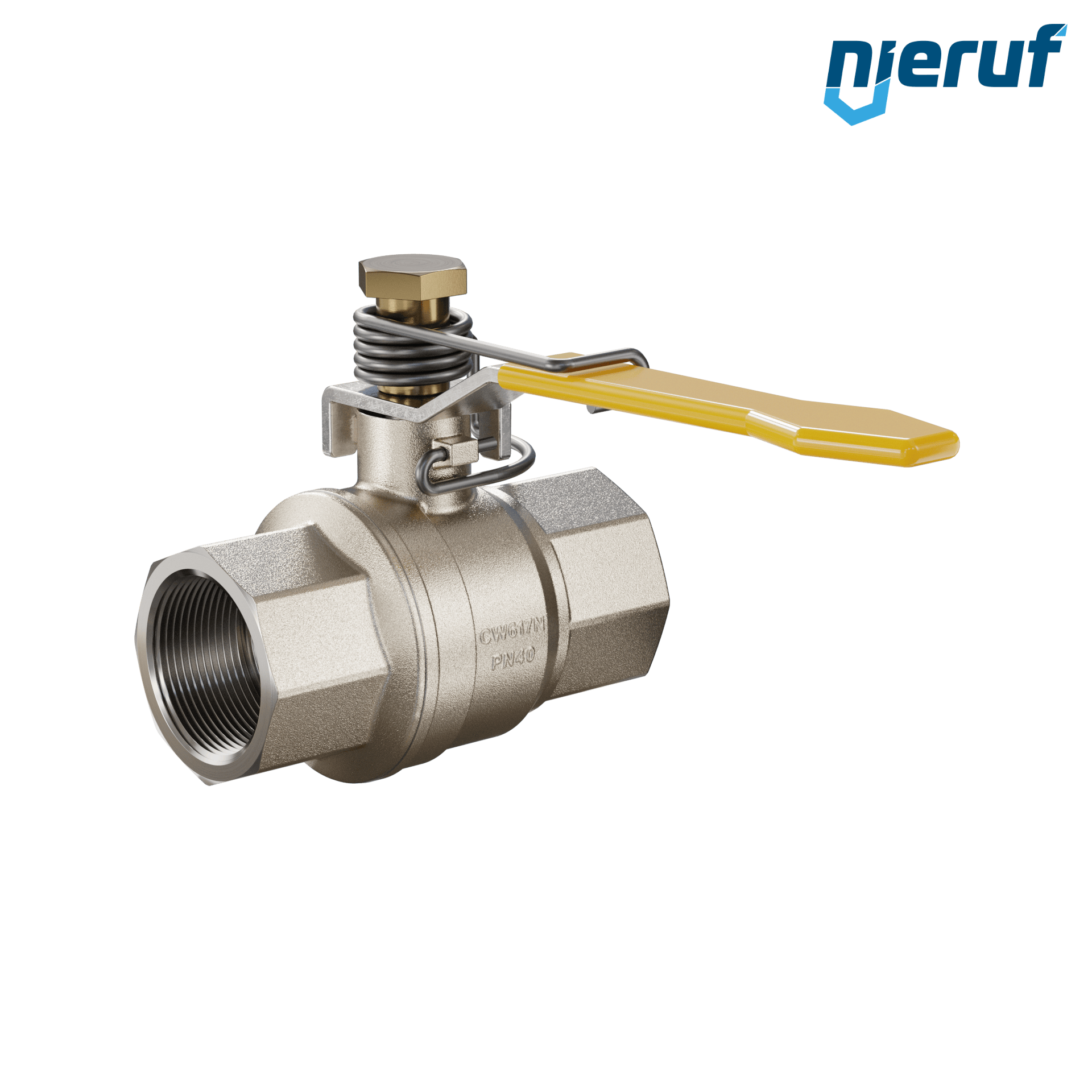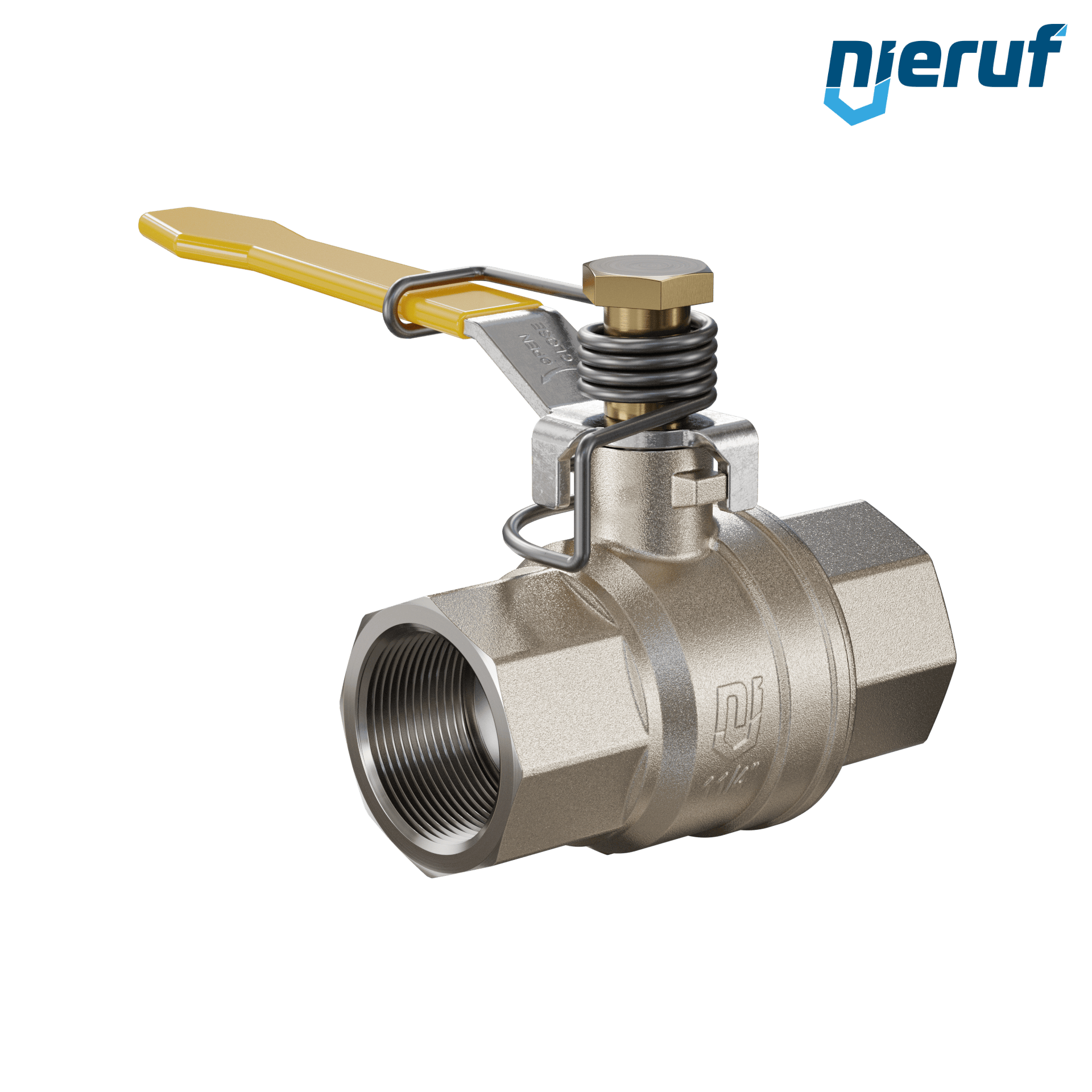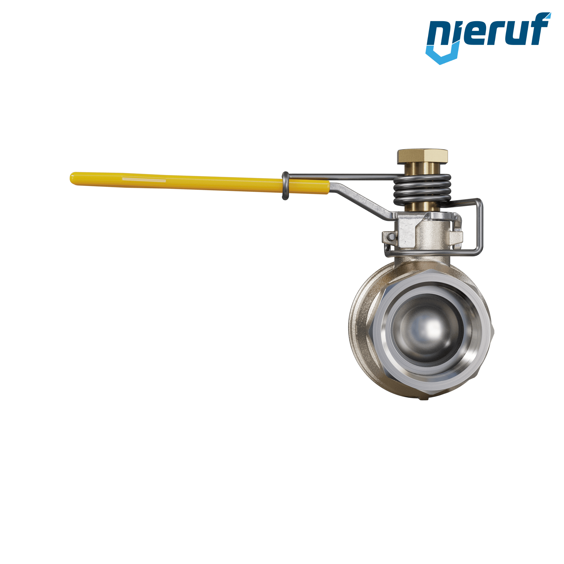 ball valve with spring reload DN32 - 1 1/4" inch full port design seal made of 2 Viton O-rings for liquid and gaseous media