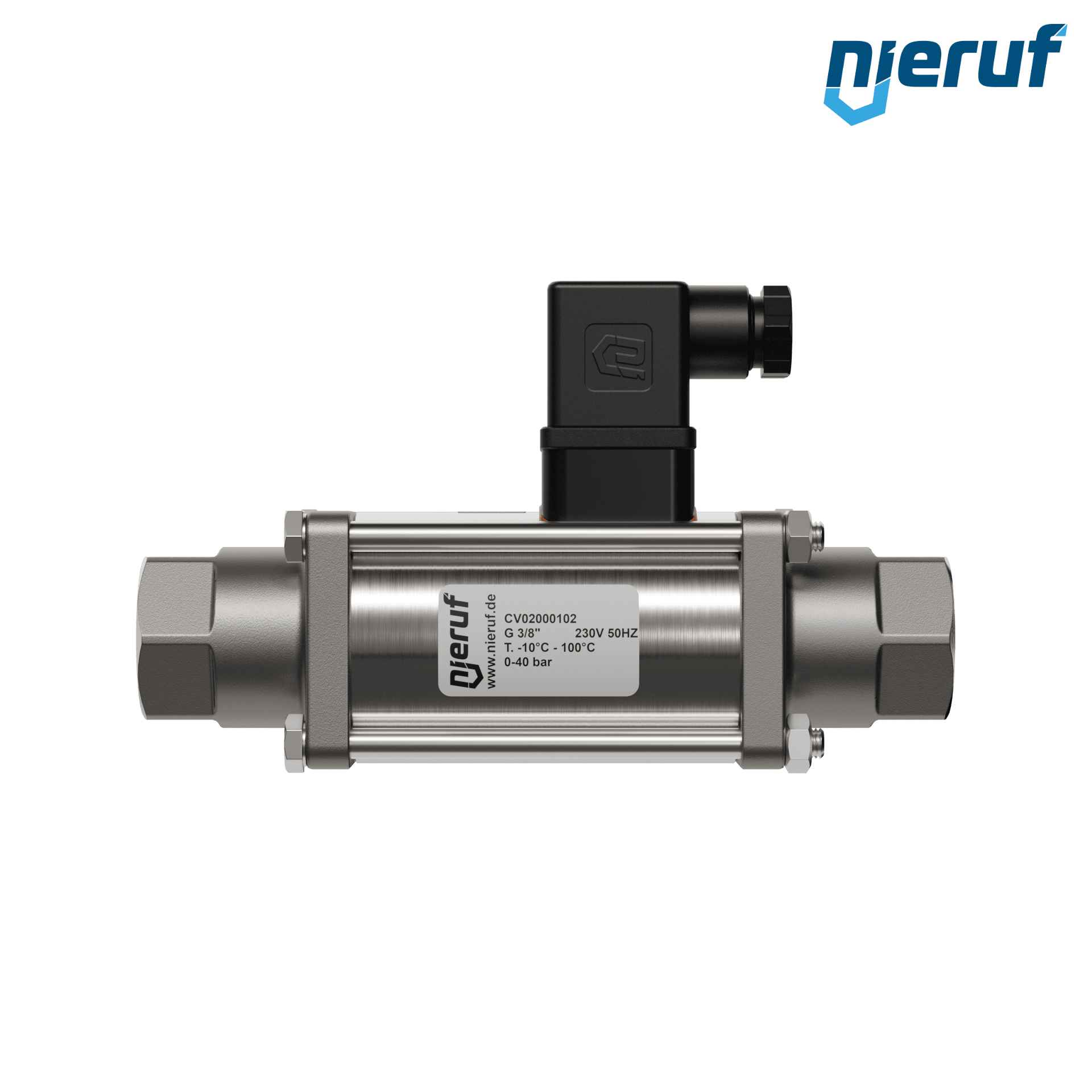 2/2 Way-valve Coaxial-valve 3/8" inch fm - DN10 made of stainless steel, direct acting up to max. 40 bar, NO - normal open voltage 230V AC