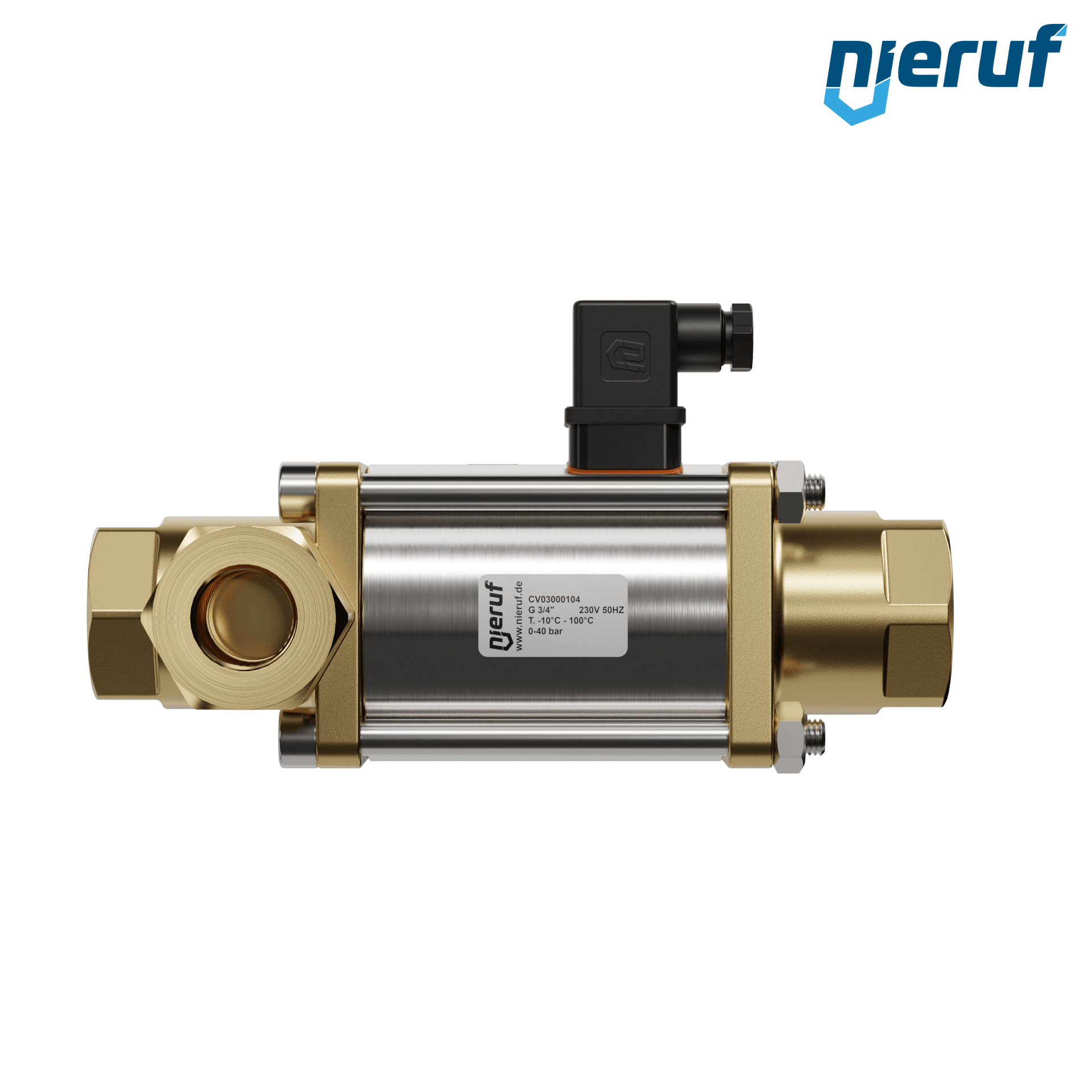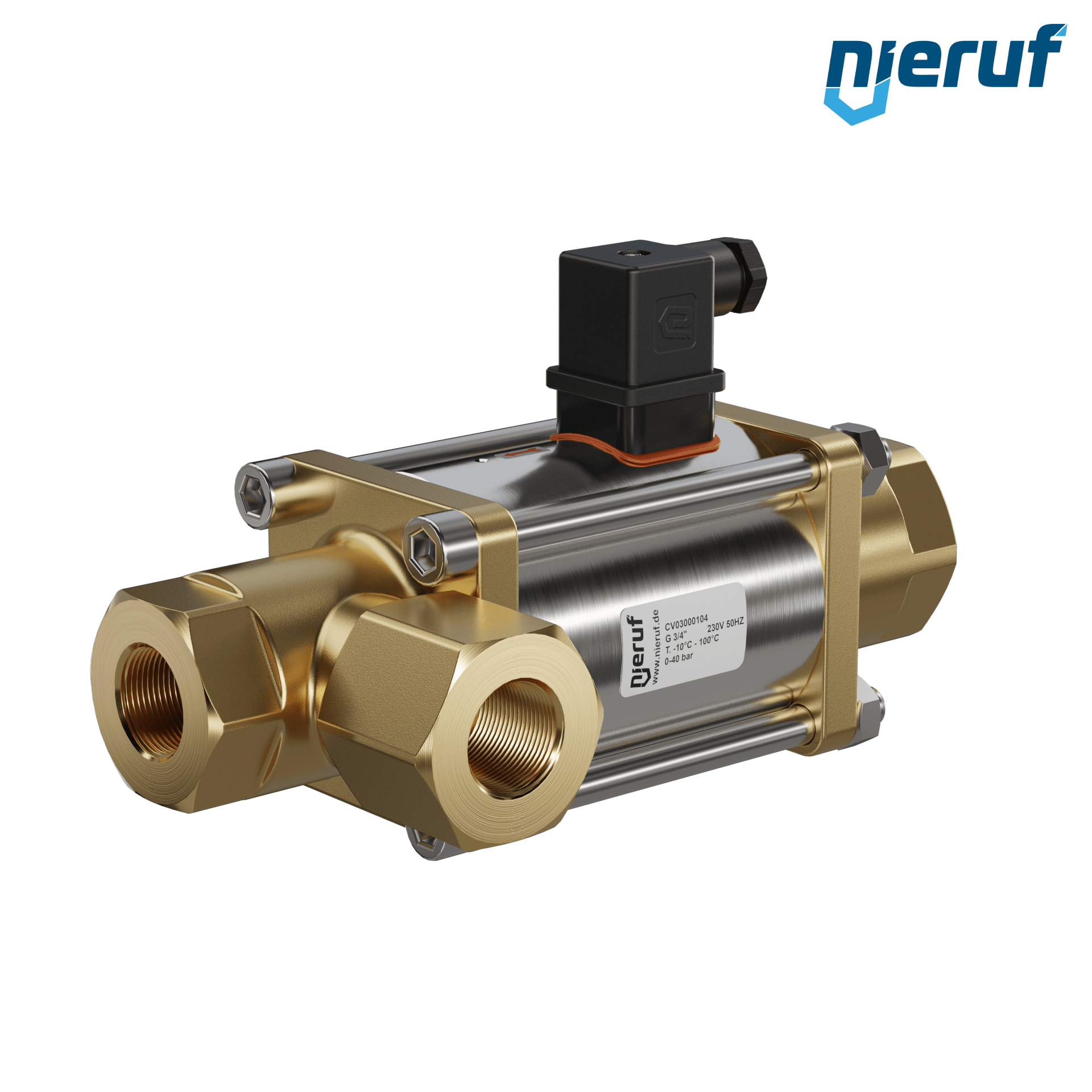 3/2 Way-valve Coaxial-valve 3/4" inch fm - DN20 made of brass, direct acting up to max. 40 bar, NO - normal open voltage 230V AC