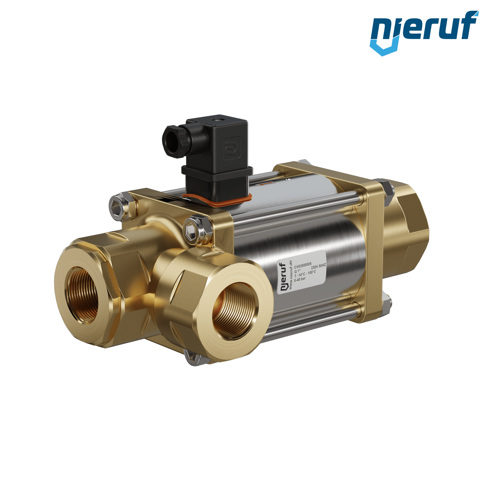 3/2 Way-valve Coaxial-valve 1" inch fm - DN25 made of brass, direct acting up to max. 40 bar, NC - normal closed voltage 230V AC