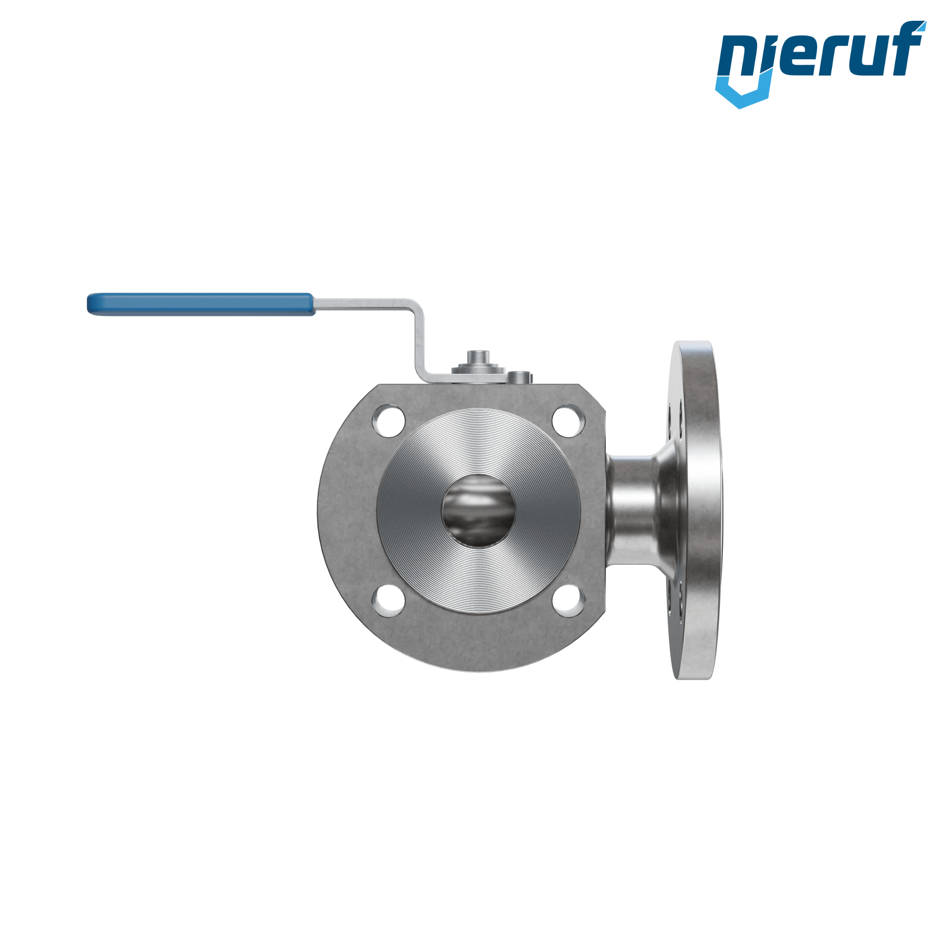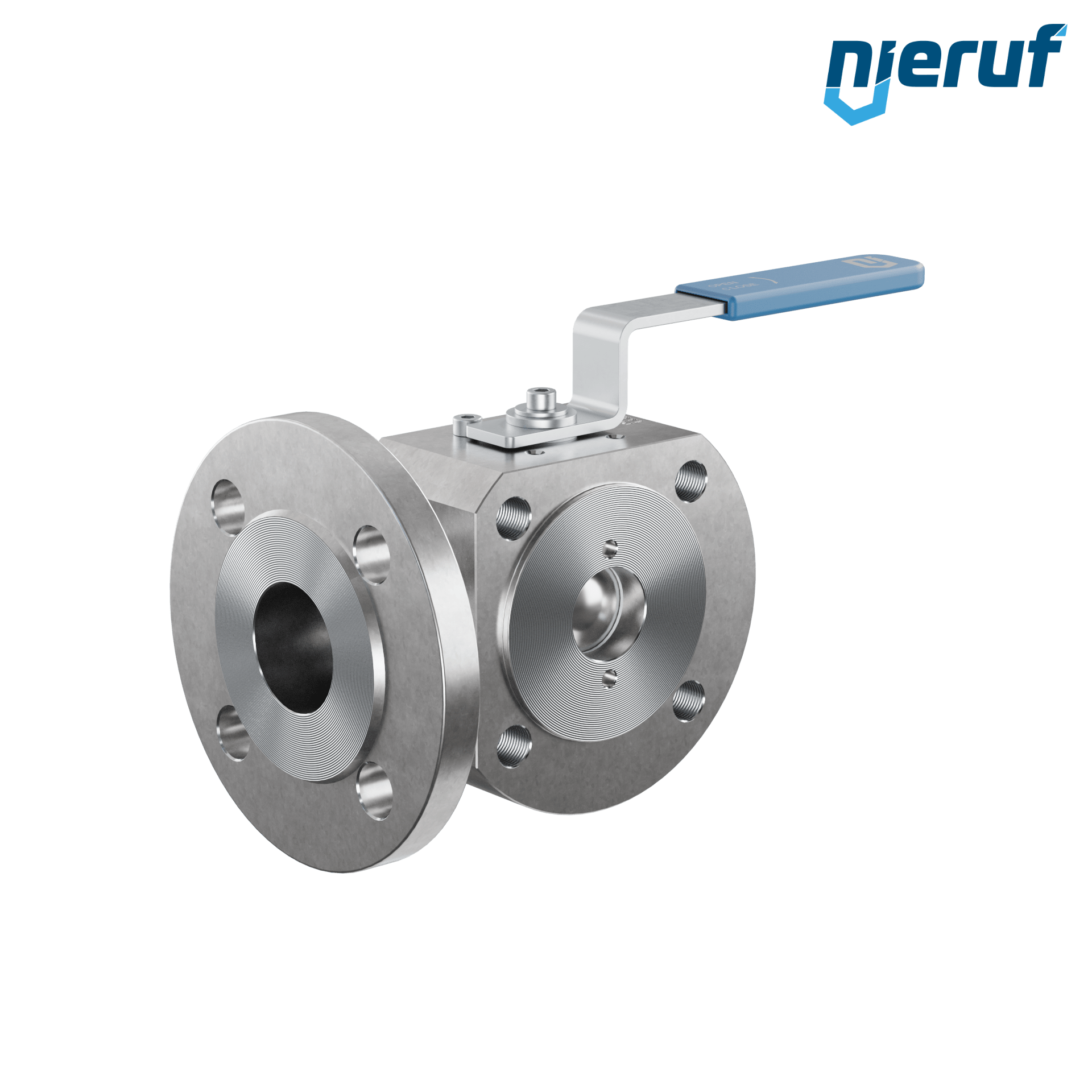 3/2 cross over ball valve DN40 PN16/40 FK07 body C22 steel zinc plated 1.040 ball stainless steel 1.4404 seal TFM 25% GF for liquid and gaseous media
