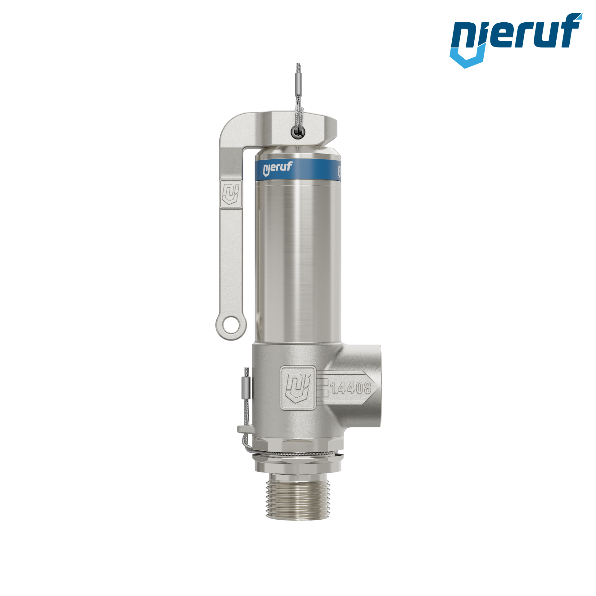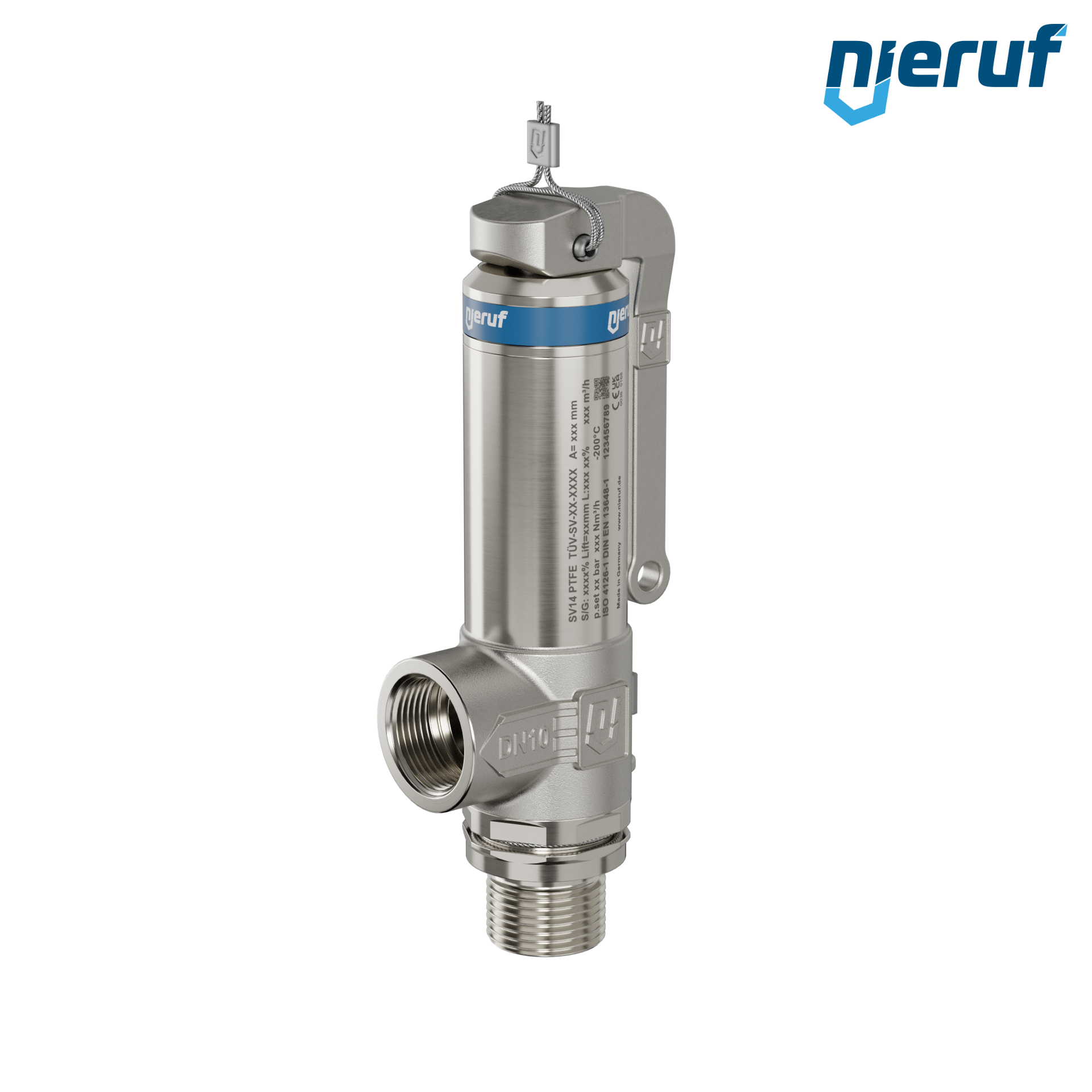 cryo-safety-valve DN8 3/8" m x 3/8" fm SV14 for cryogenic liquified gases made of stainless steel with lever seal PTFE pressure 0,2 - 70,0 bar