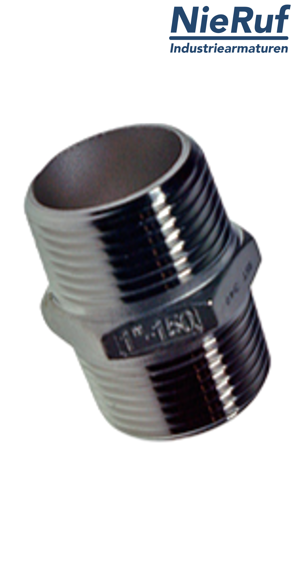 hexagon nipple GF04-3 with male thread 1" inch NPT made of stainless steel 316 for liquid and gaseous media