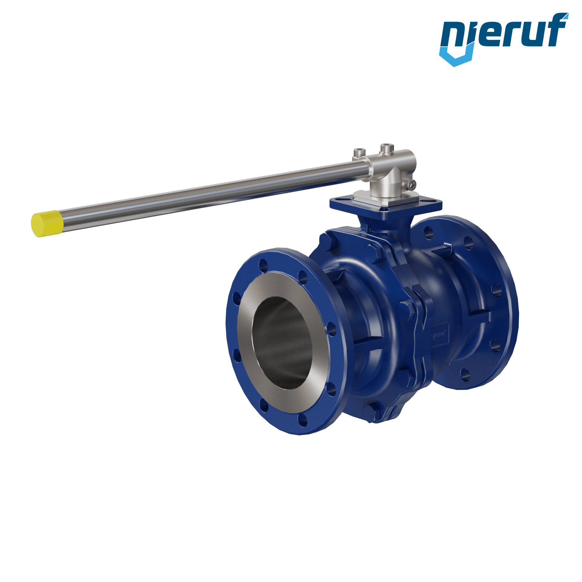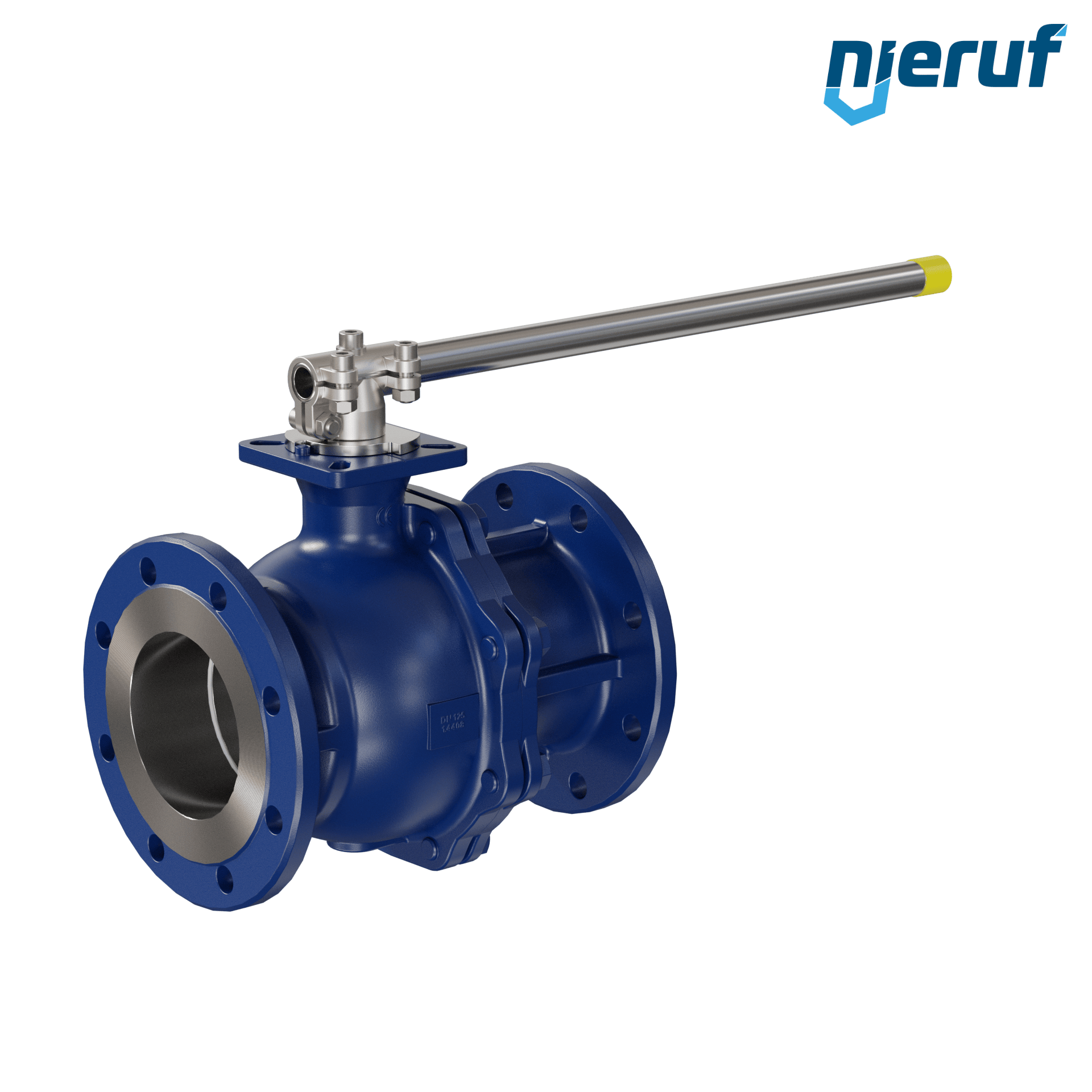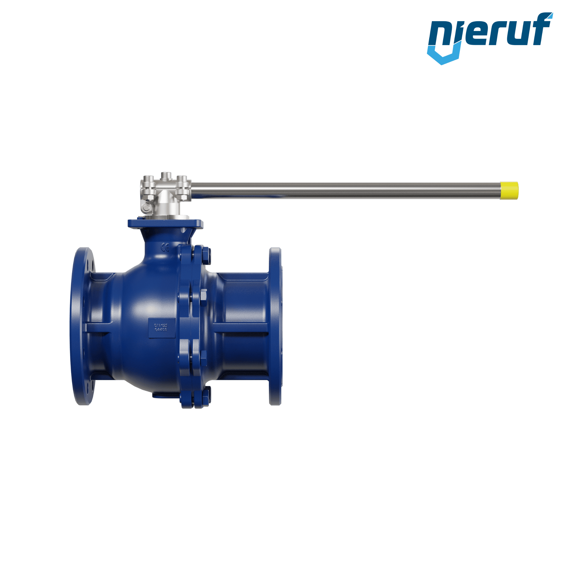 This high quality ball valve is made of carbon steel with blow out proof stem design. Two-piece body valve with mounting flange acc. to DIN ISO 5211. Stem extension is made of steel. The stem seal is 3 - side covered.