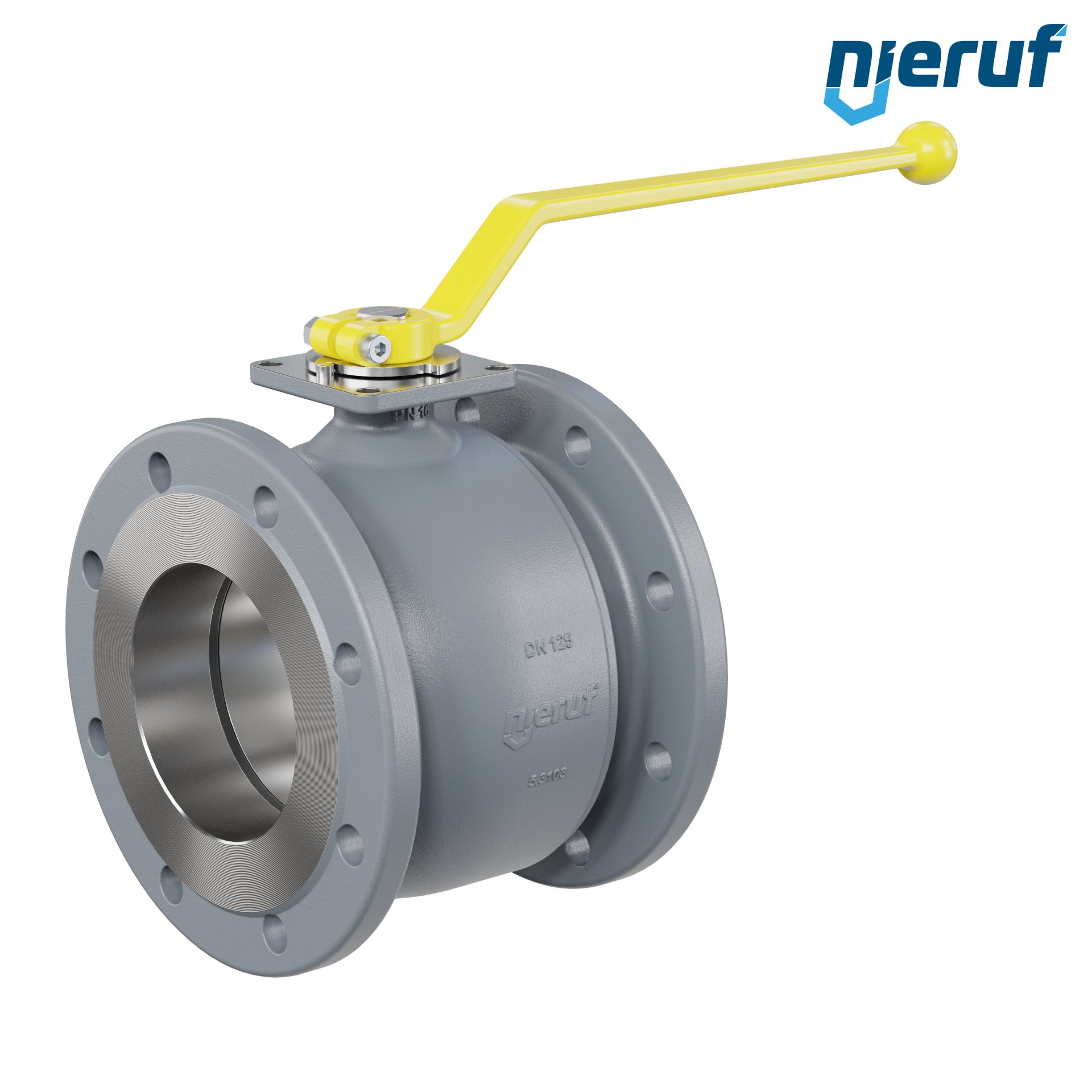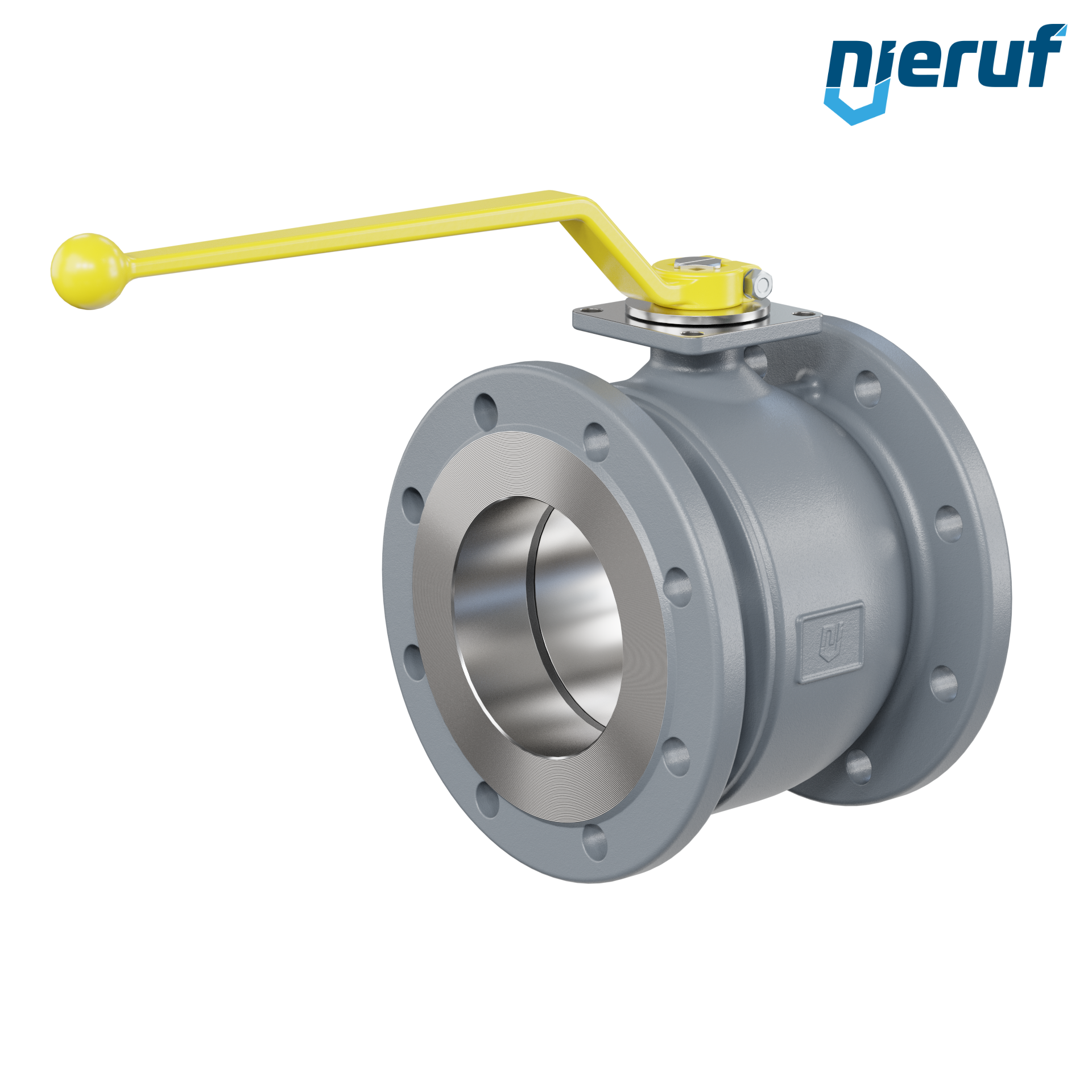 This high quality ball valve is made of spheroidal graphite cast iron with Fire-Safe-Design and a solid stainless steel ball. Two-piece body valve with flange dimensions acc. DIN EN 1092-2 PN 16 dimensions acc. to DIN EN 1092-2 PN 16.