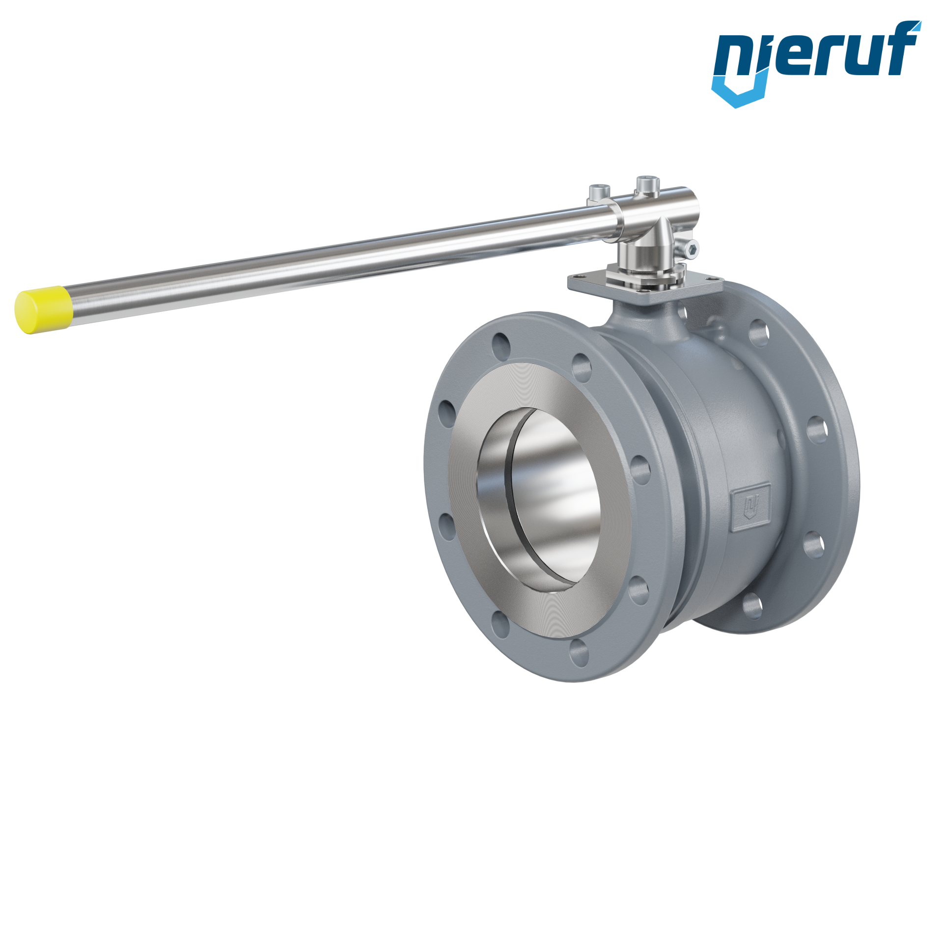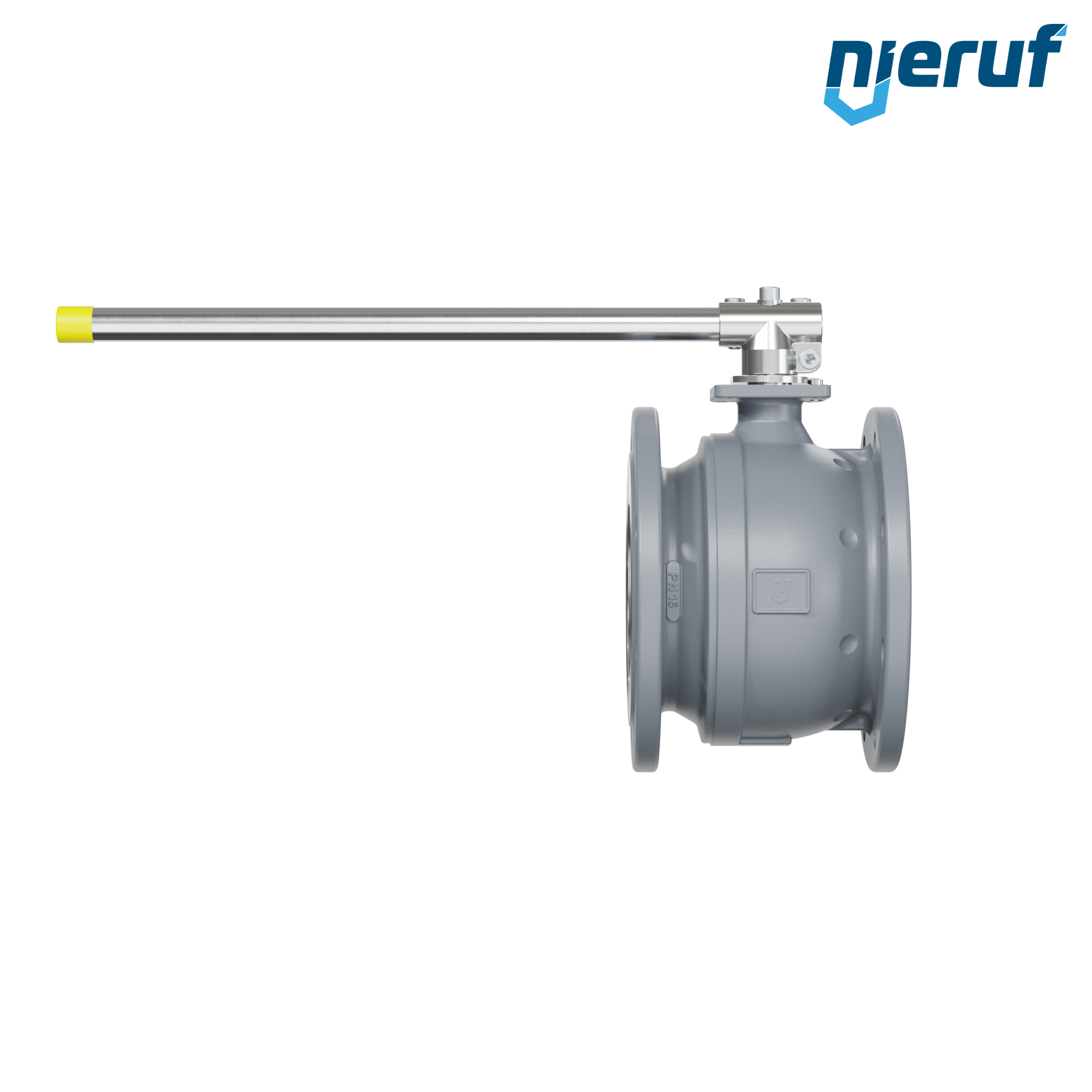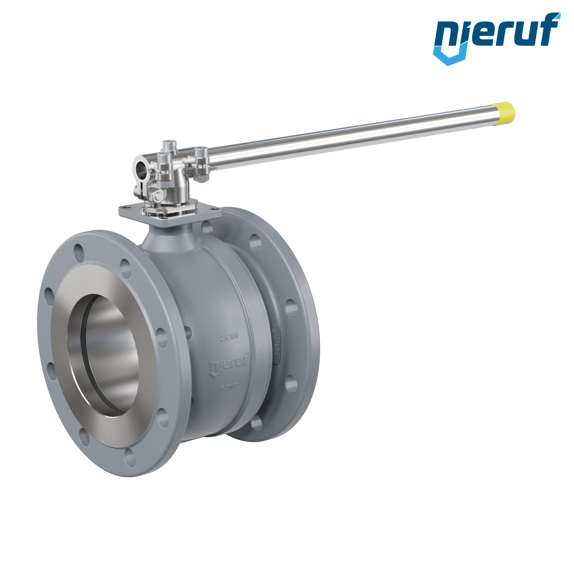 This high quality ball valve is made of spheroidal graphite cast iron with Fire-Safe-Design and floating chrome plated steel ball. Two-piece body valve with flange dimensions acc. DIN EN 1092-2 PN 16 dimensions acc. to DIN EN 1092-2 PN 16.
