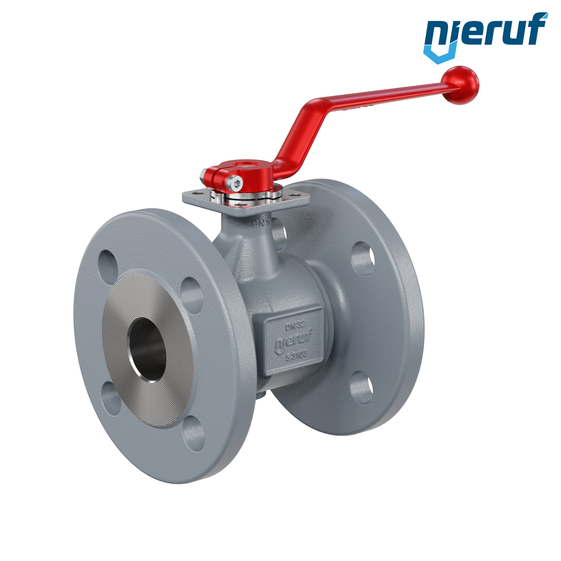 Flange ball valve DN32 FK02 body spheroidal graphite cast iron GJS 400-18 ball (solid) stainless steel 1.4408 seal PTFE / GF for liquid and gaseous media