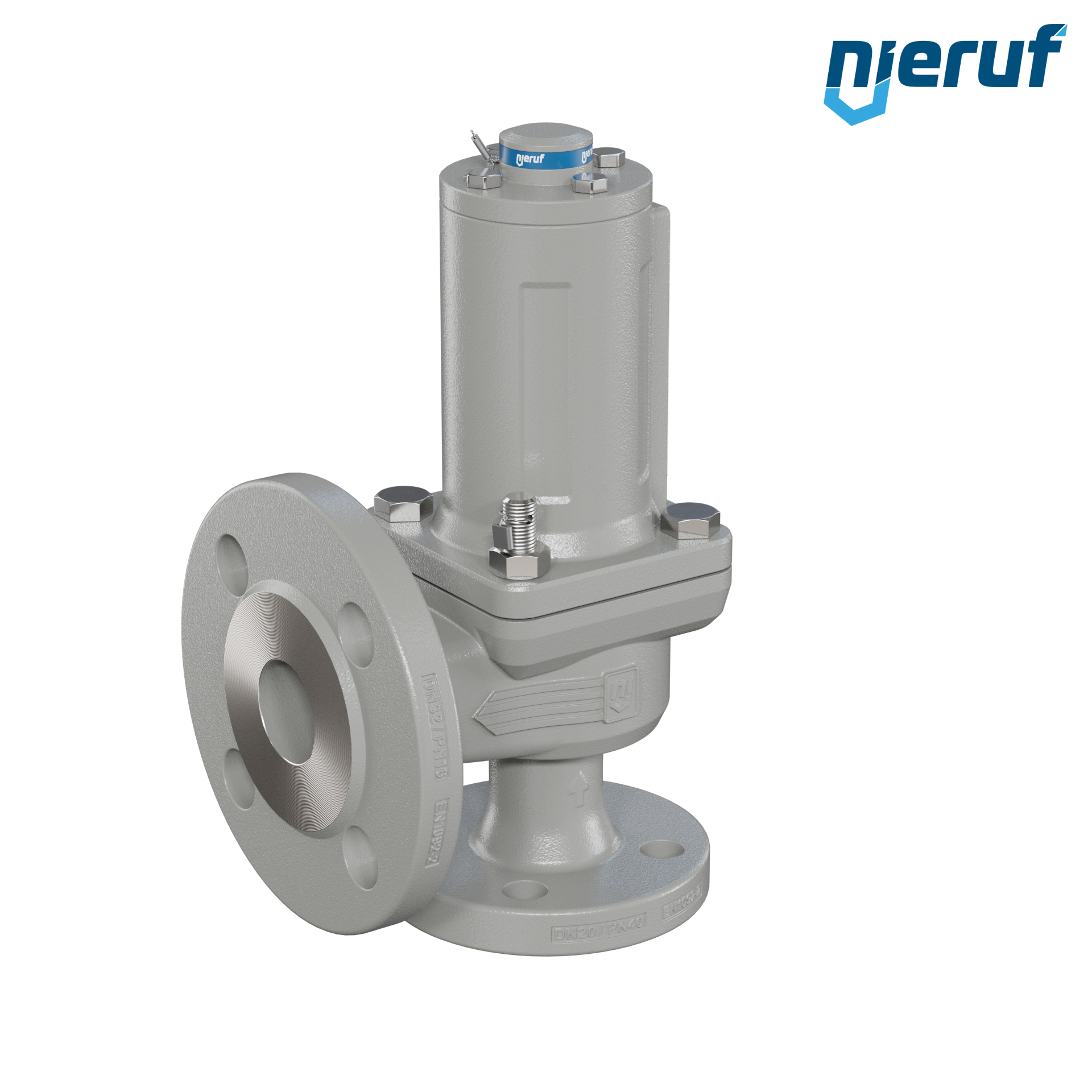 flange-safety valve gastight DN20/DN32 SF06 for liquid and gaseous media made of Spheriodal graphite cast iron 5.1303 seal metal set pressure 0,2 - 40,0 bar without lifting device