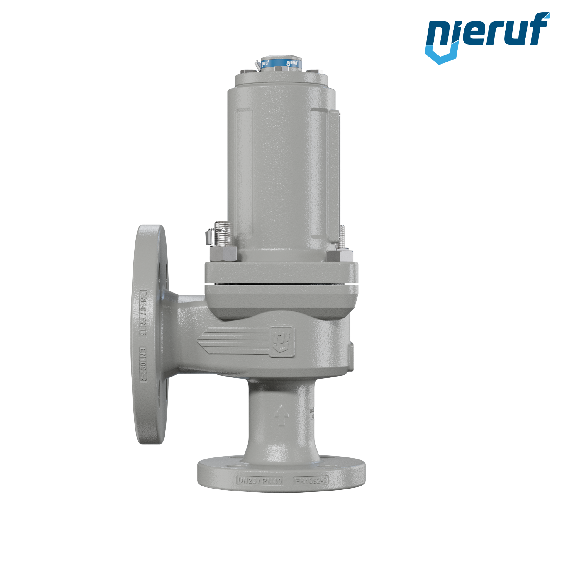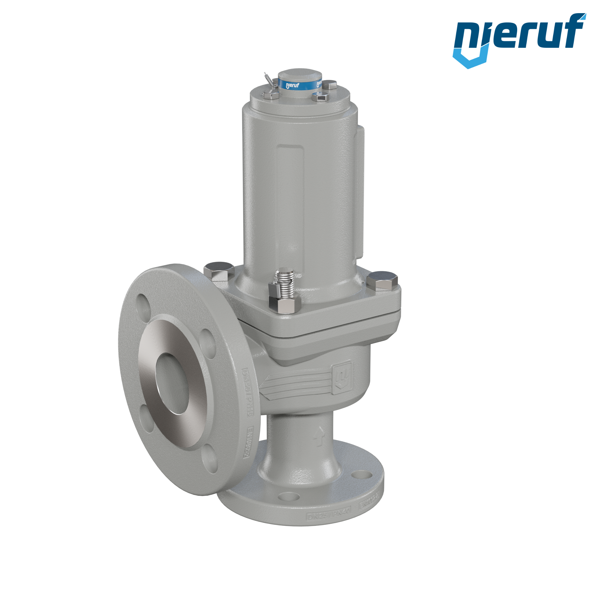 flange-safety valve gastight DN25/DN40 SF06 for liquid and gaseous media made of Spheriodal graphite cast iron 5.1303 seal metal set pressure 0,2 - 40,0 bar without lifting device