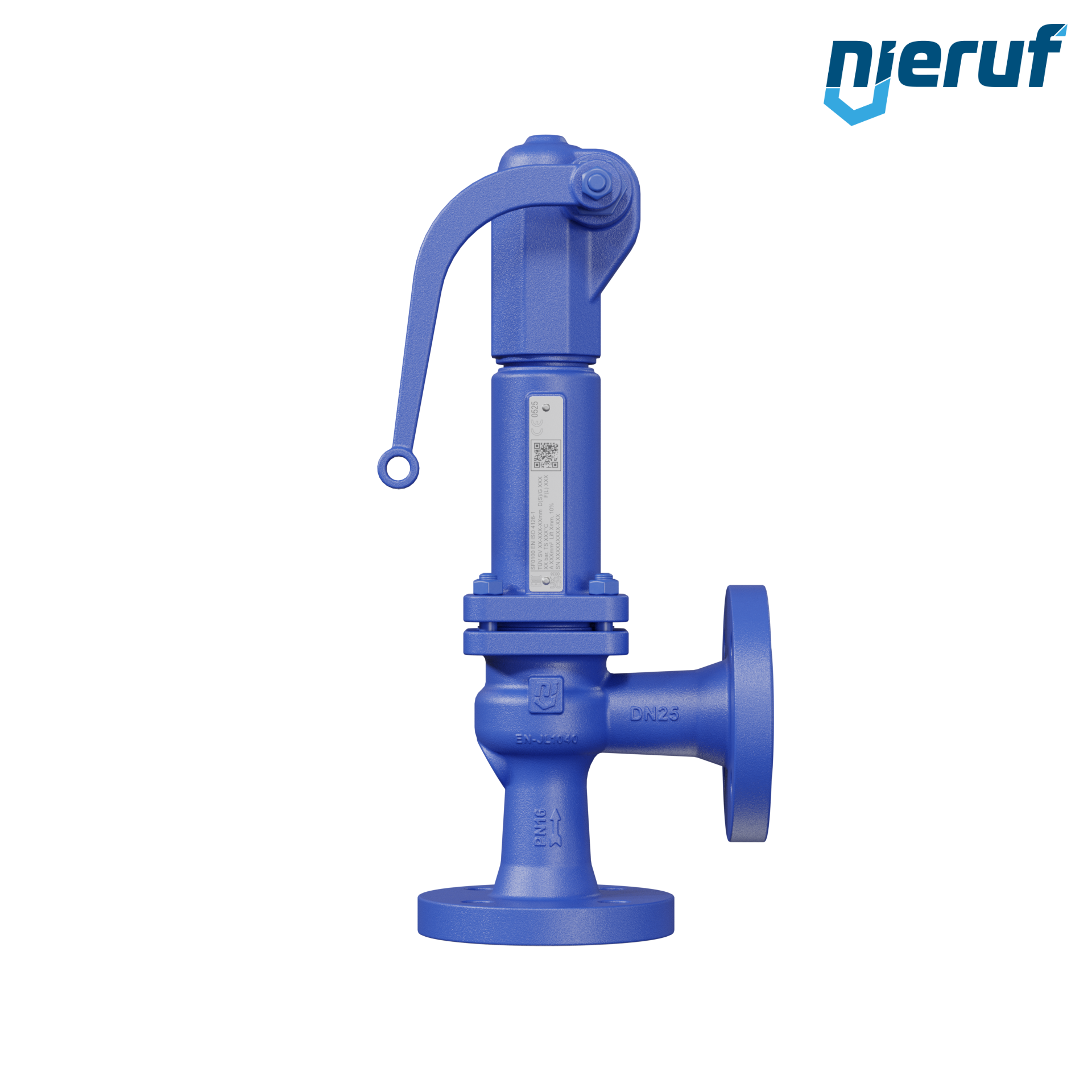 flange-safety valve DN25/DN25 made of cast iron EN-JL1040 seal FPM pressure 0,5 up to max. 16 bar lifting with lever