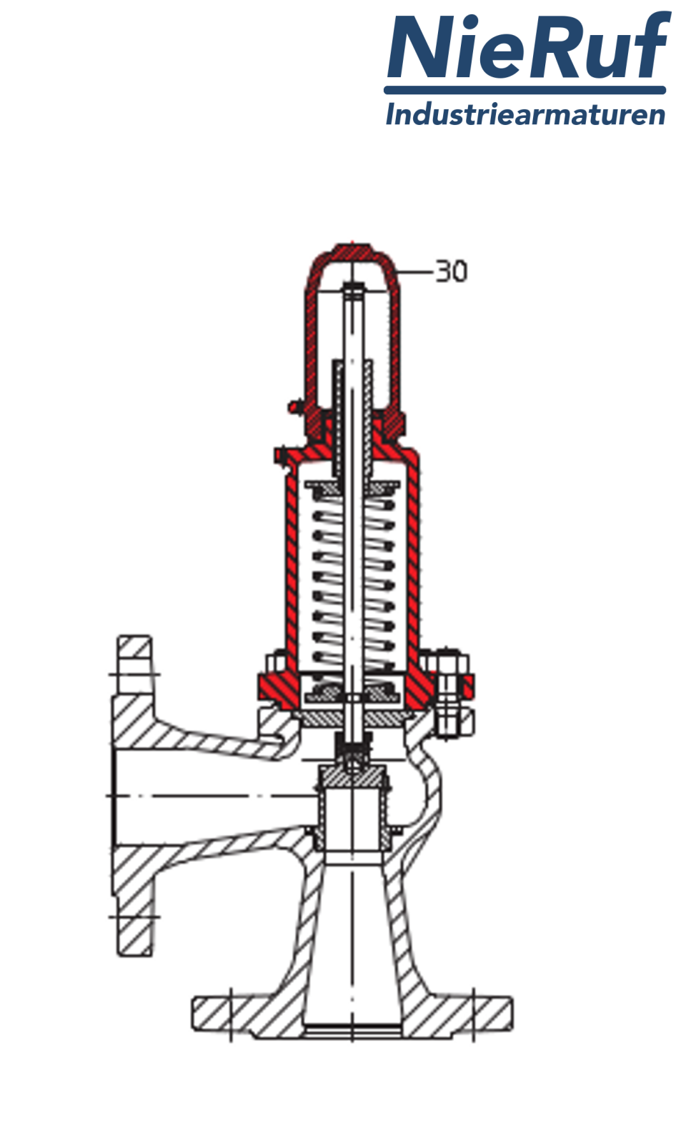 flange-safety valve DN32/DN32 without lever gastight cap and closed bonnet for liquid and gaseous media made of cast iro seal metal