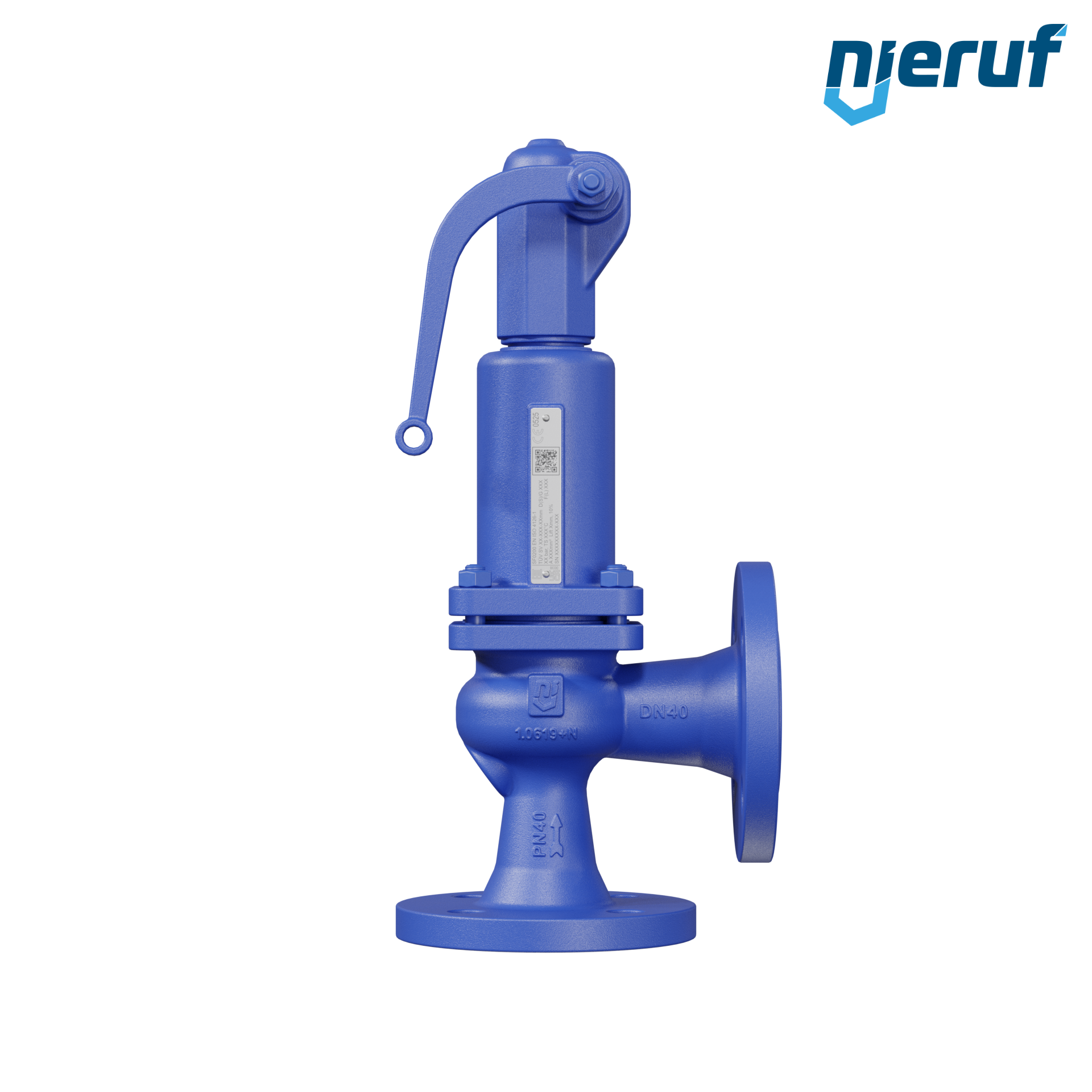 flange-safety valve DN40/DN40 for liquid and gaseous media made of cast steel 1.0619+N seal metal pressure 0,2 up to max. 40 bar