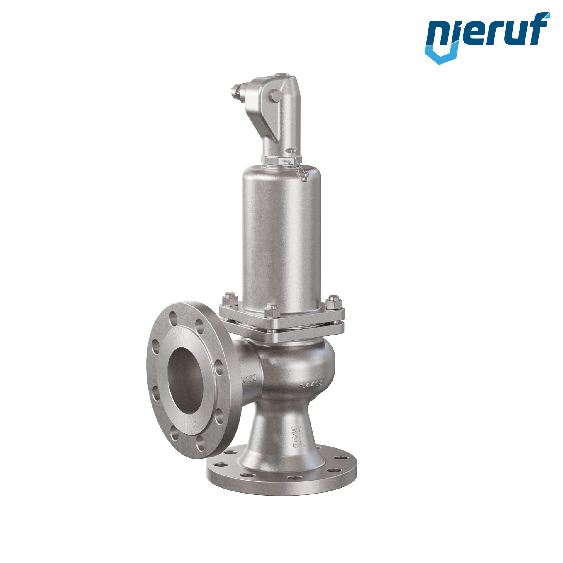 flange-safety valve DN100 SF03 for liquid and gaseous media made of stainless steel seal FPM pressure 0,5 up to max. 25 bar with lever