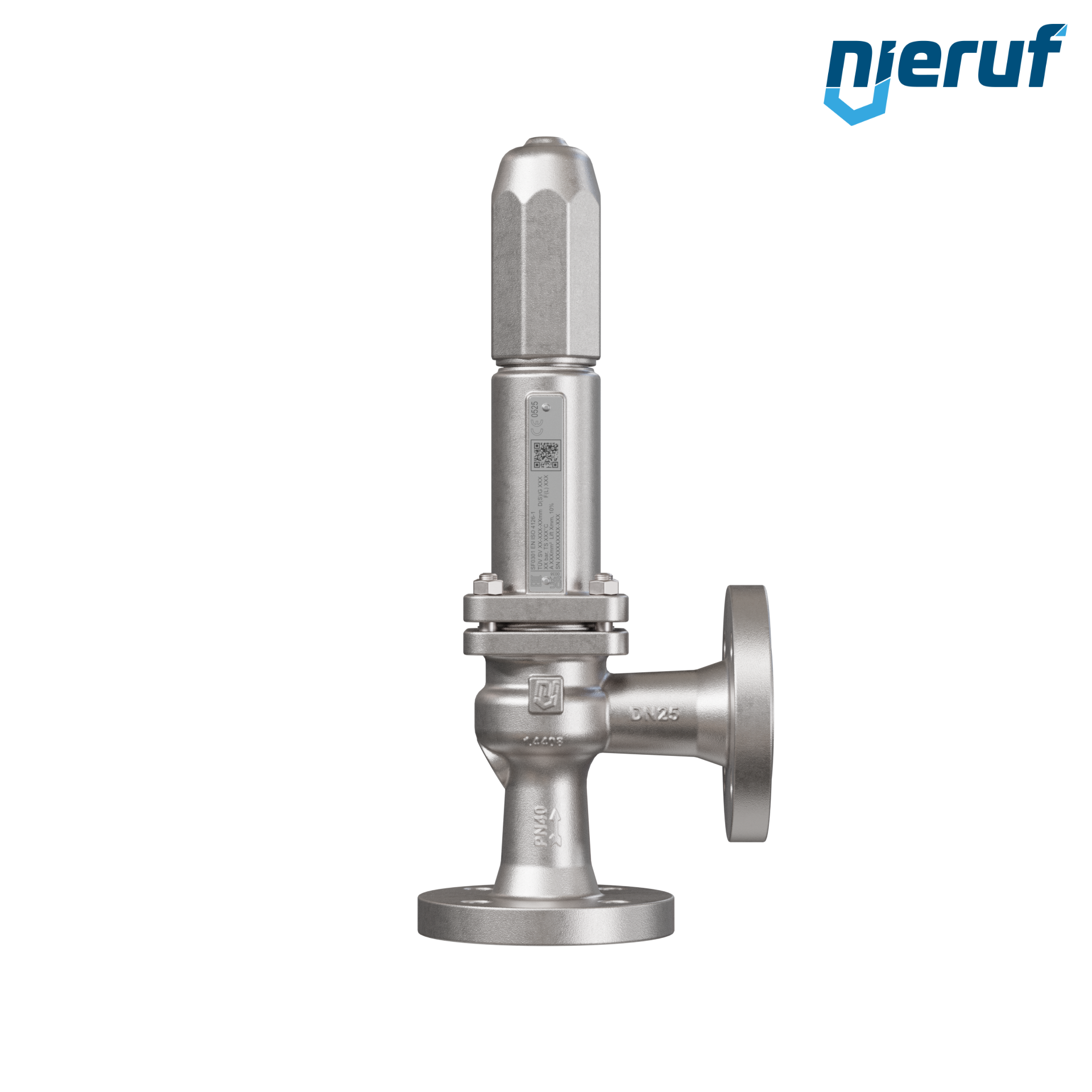 flange-safety valve entry DN25 exit DN25 for liquid and gaseous media, made of stainless steel seal FPM pressure 0,5 up to max. 40 bar