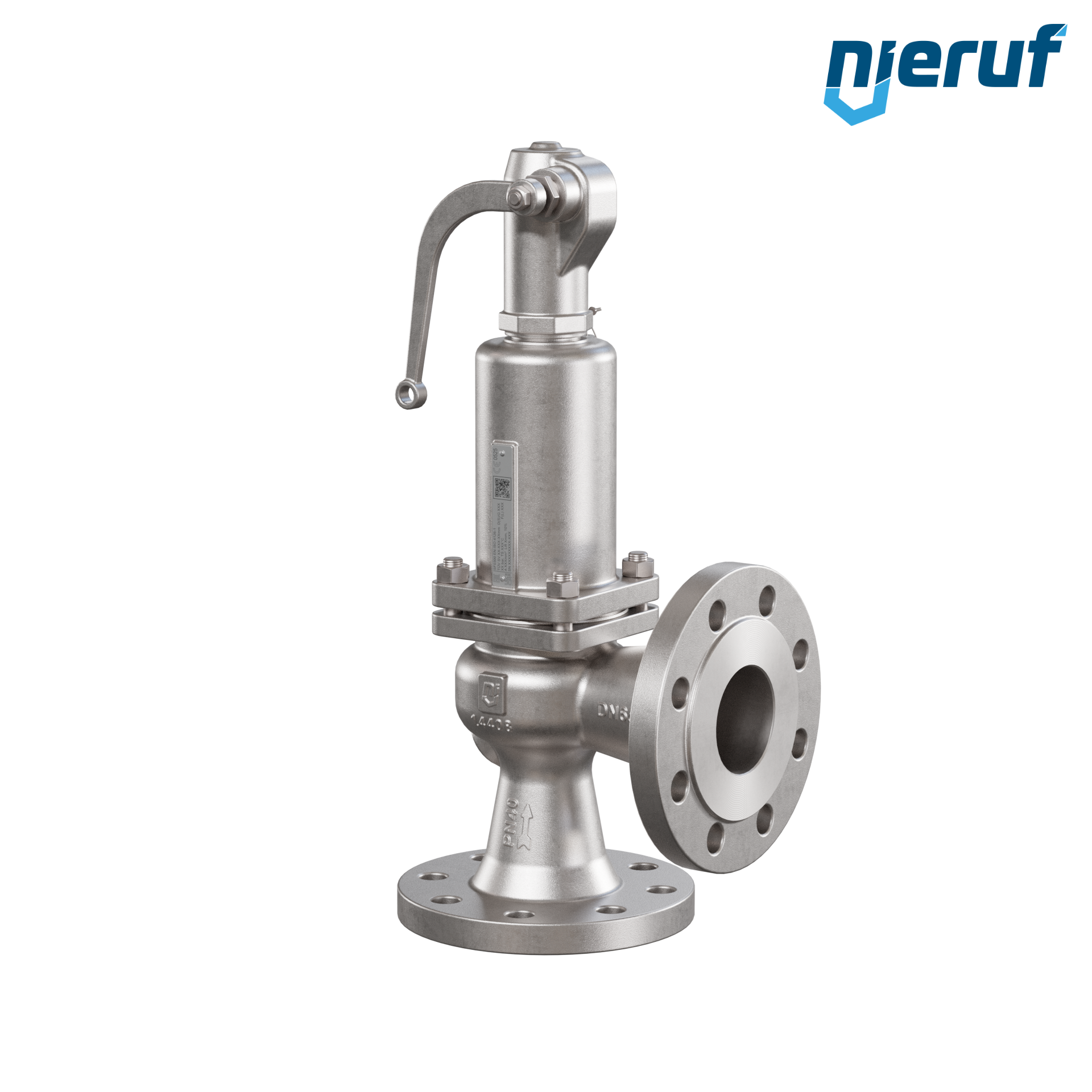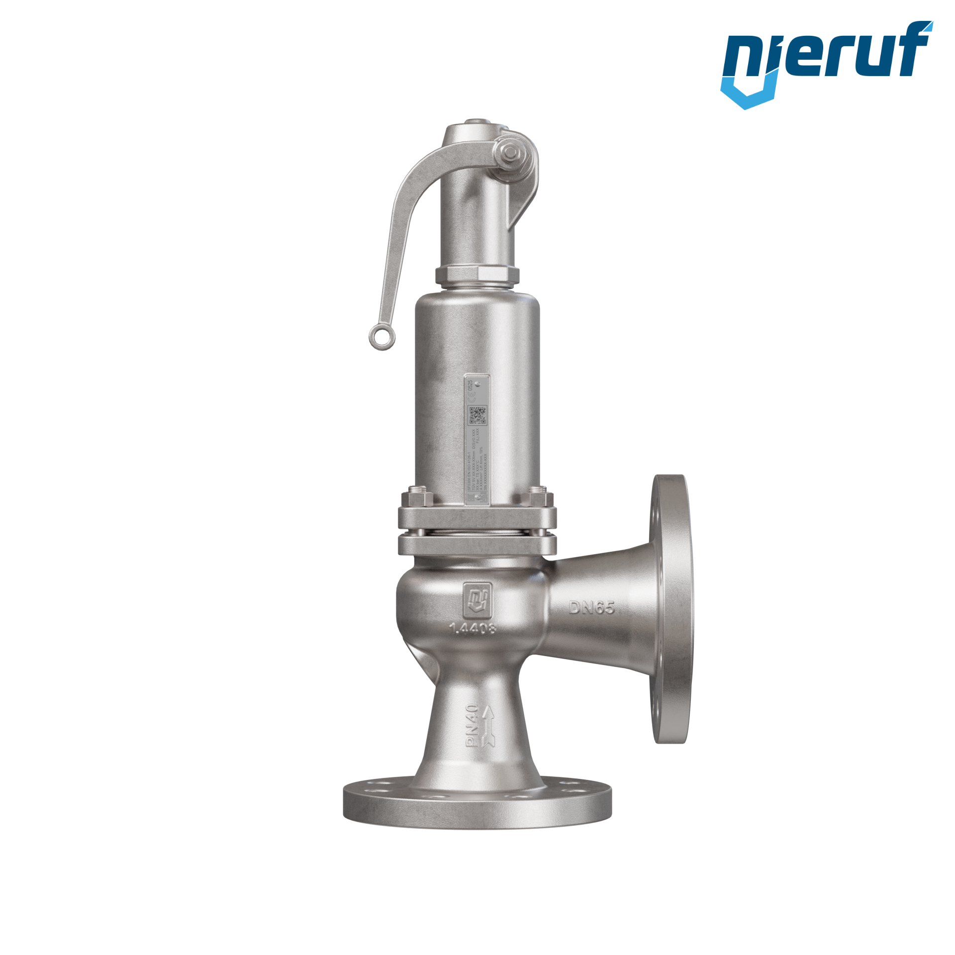 flange-safety valve DN65 SF03 for liquid and gaseous media made of stainless steel seal FPM pressure 0,5 up to max. 30 bar with lever