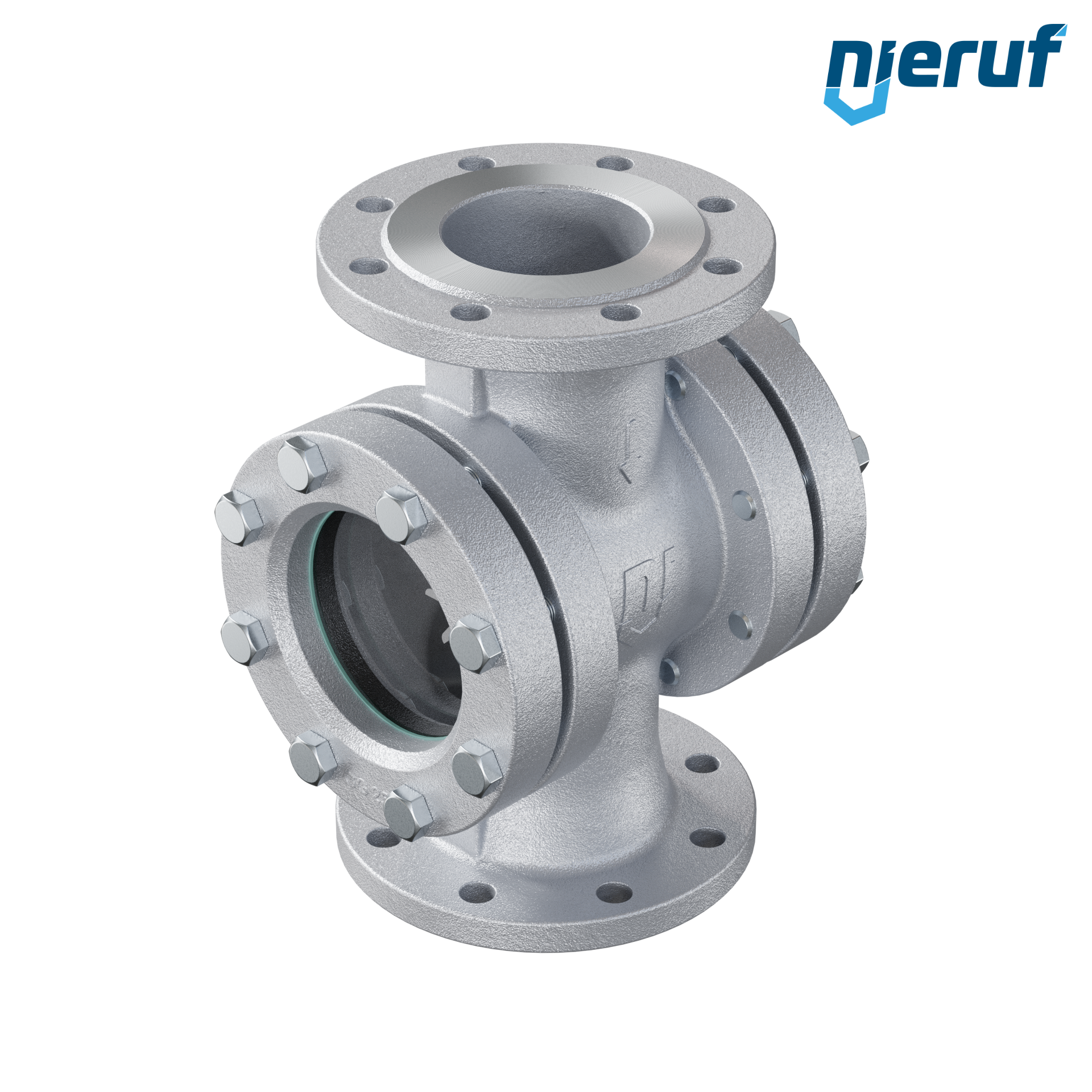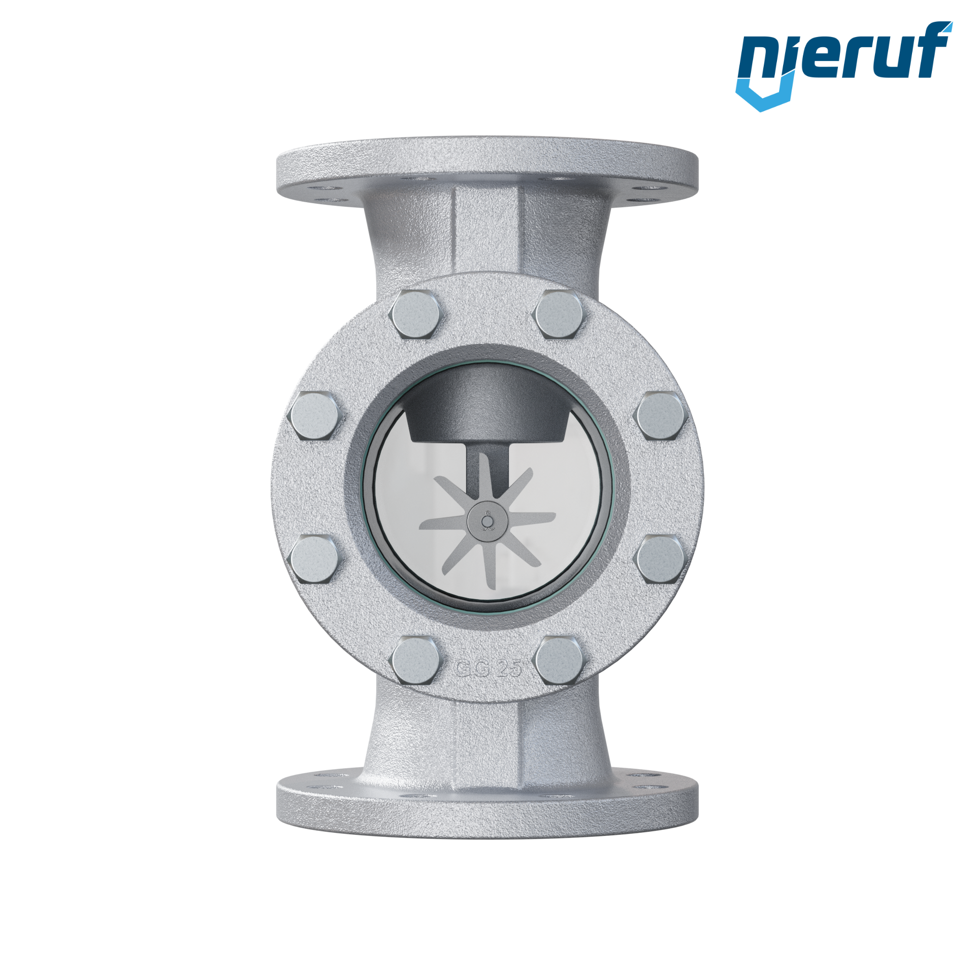 flange sight flow indicator DN100 grey cast iron GG25 soda lime glass version with PTFE-spinner