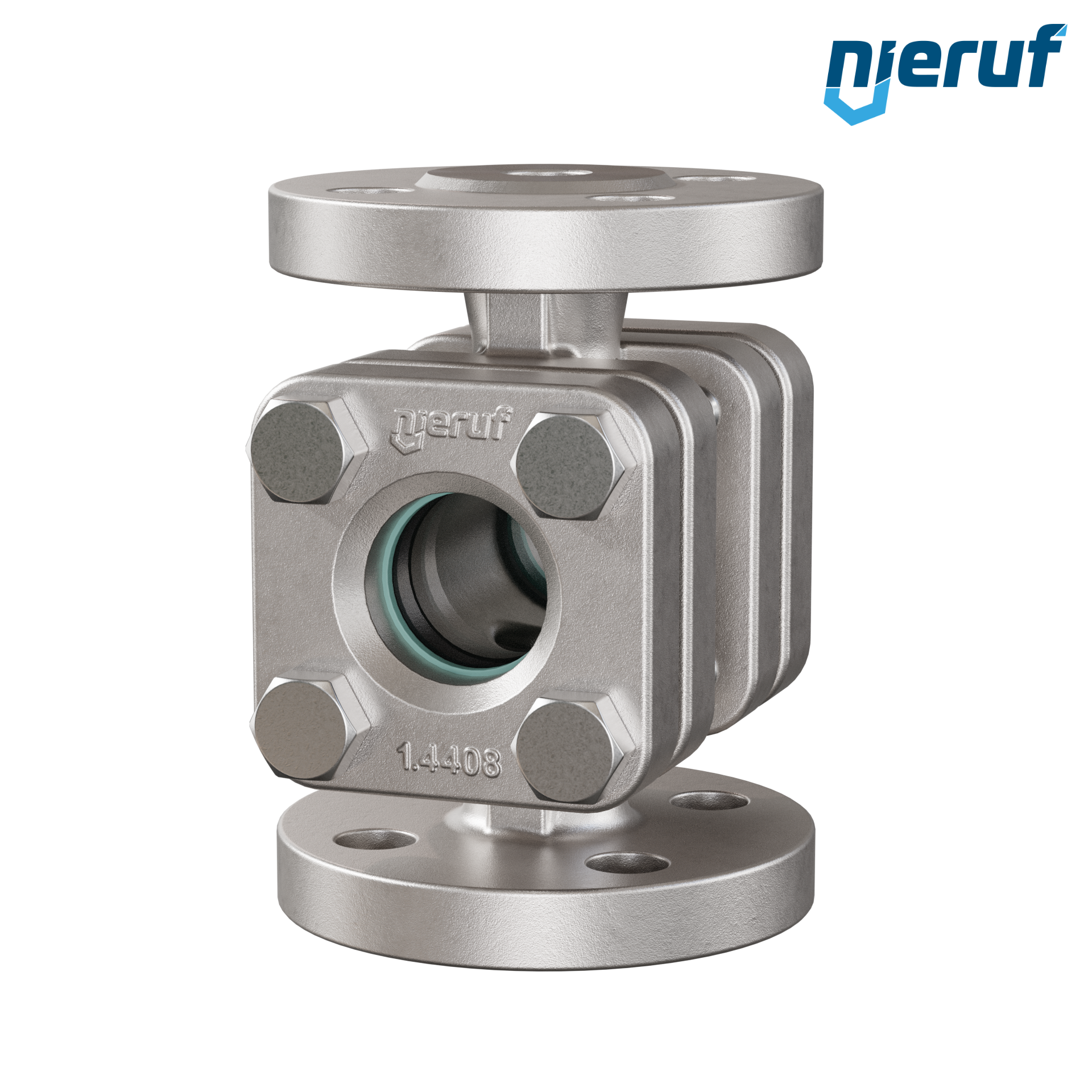 flange sight flow indicator DN15 stainless steel soda lime glass version with dripping edge
