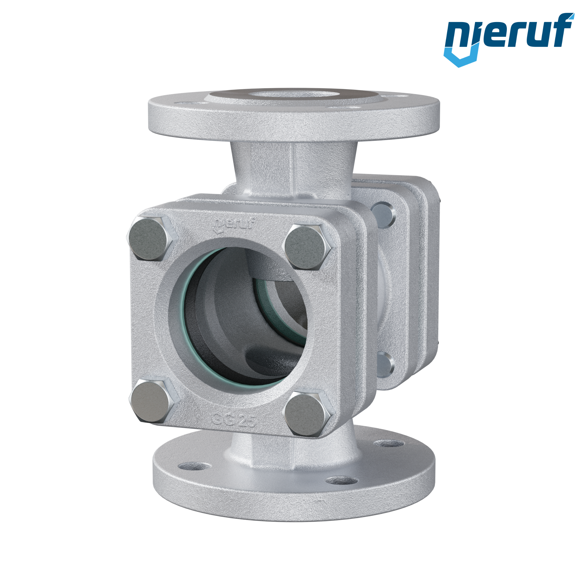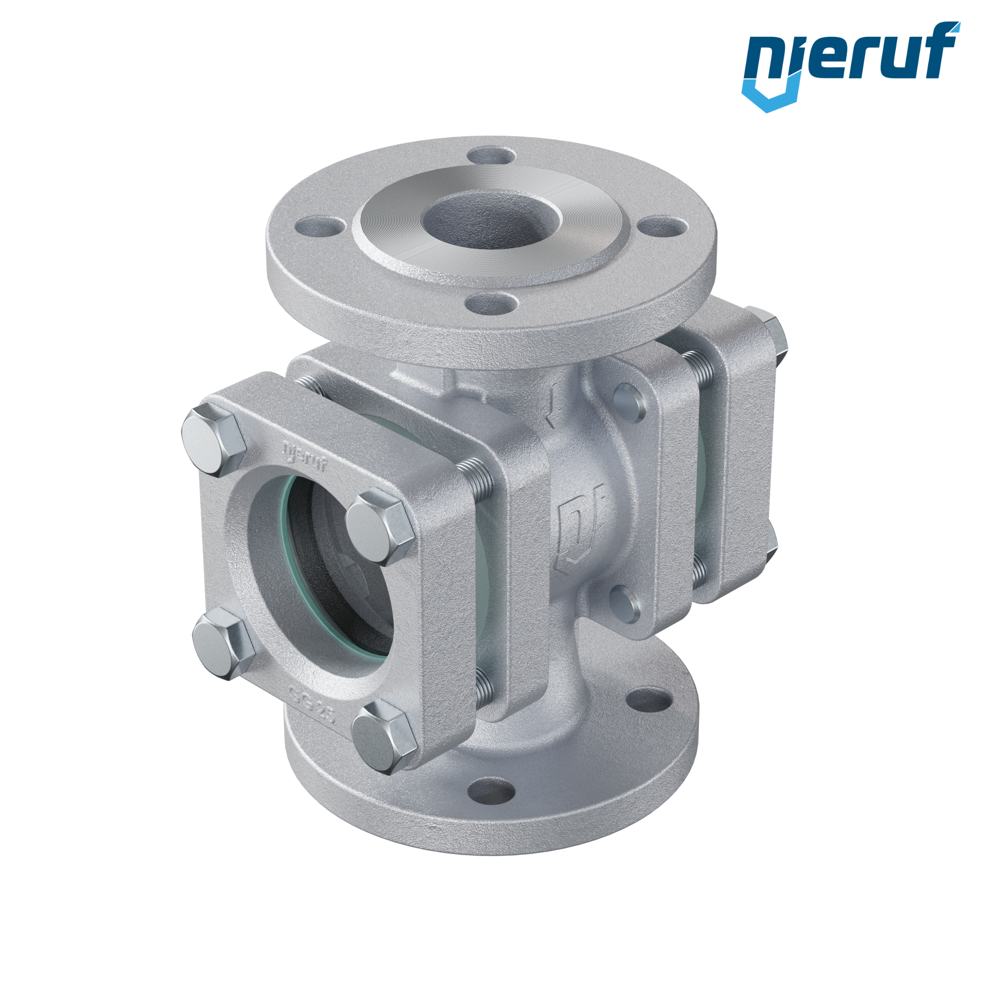 flange sight flow indicator DN50 grey cast iron GG25 soda lime glass version with dripping edge