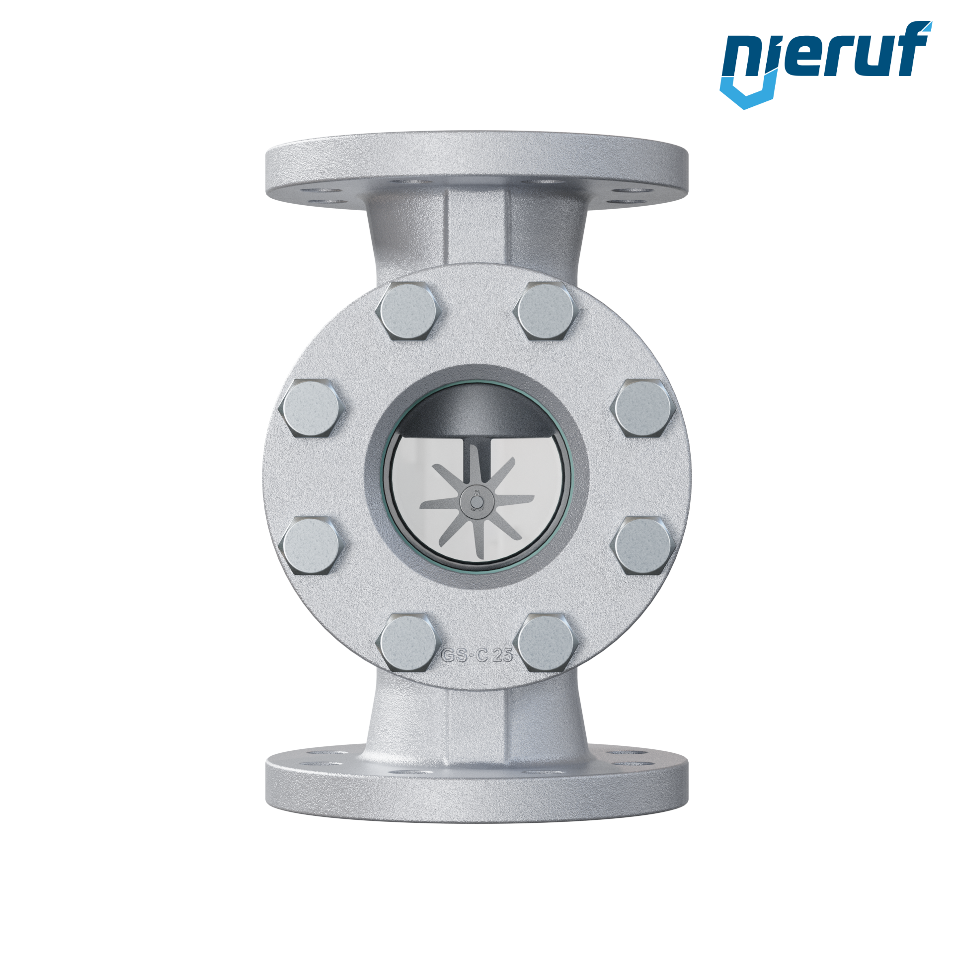 flange sight flow indicator 2 1/2" GS - C25 Typ FS02 soda lime glass max 16 bar design with PTFE-spinner