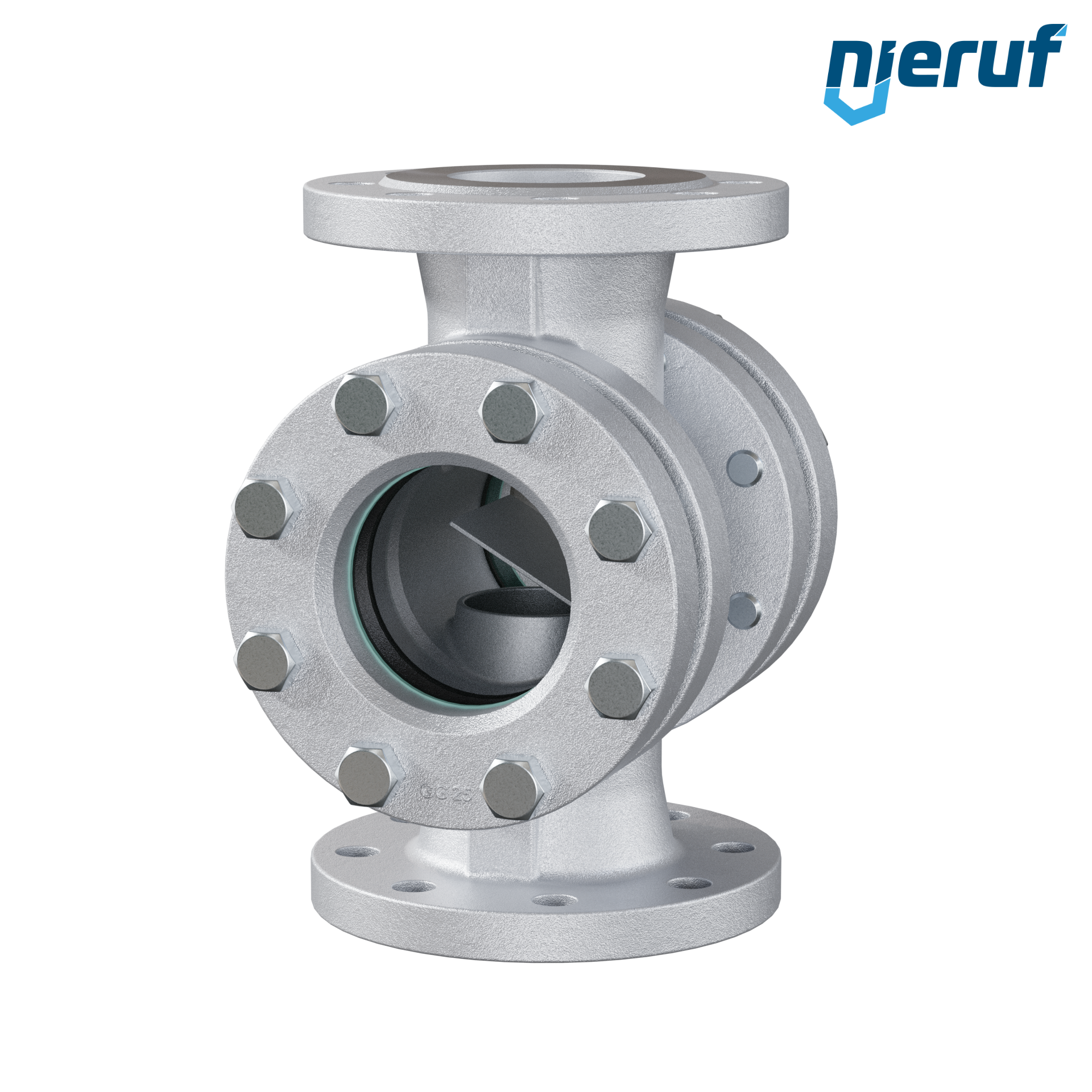 flange sight flow indicator DN80 grey cast iron GG25 borosilicate glass version with flap