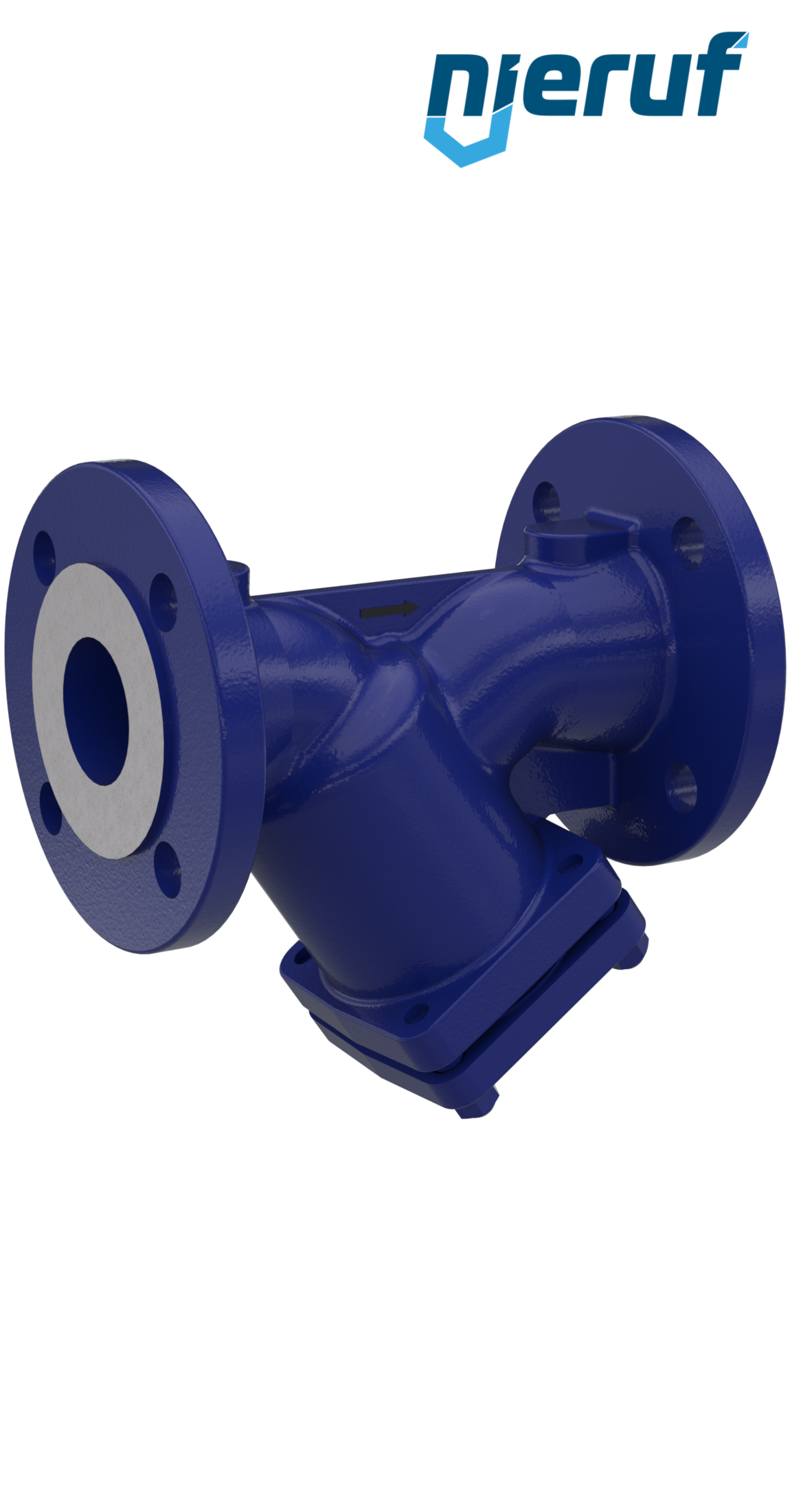strainer DN15 made of cast iron (blue painting) for steam flange PN10/16 temperature up to +300°C 1 mm mesh
