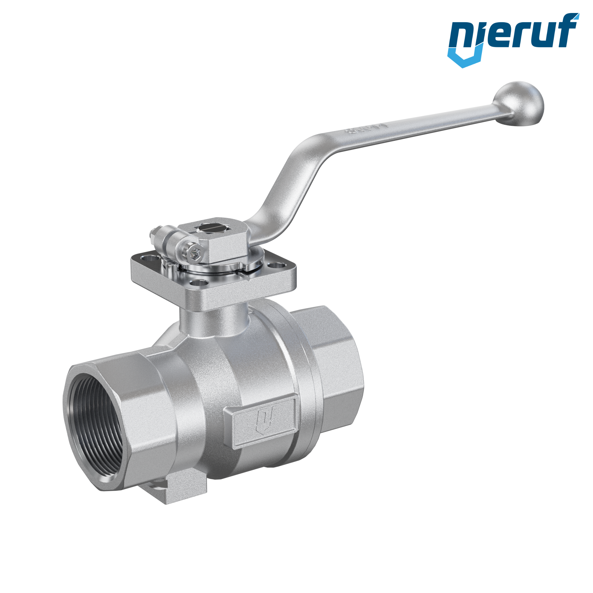 This two-piece ball valve "screwed design" is made of carbon steel with mounting flange (DIN ISO 5211) with floating ball is suitable for direct actuator mounting
