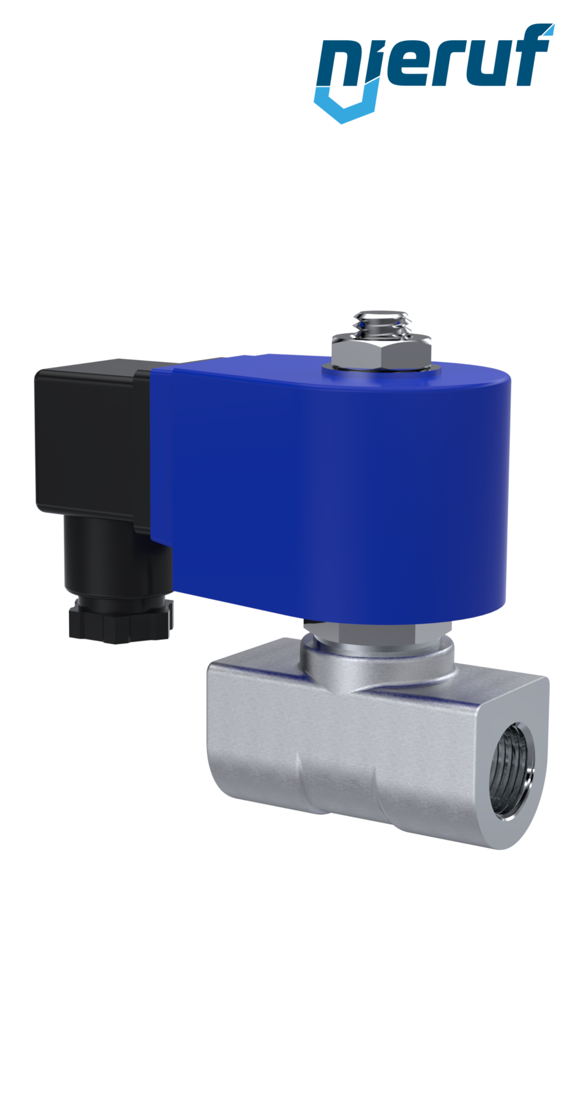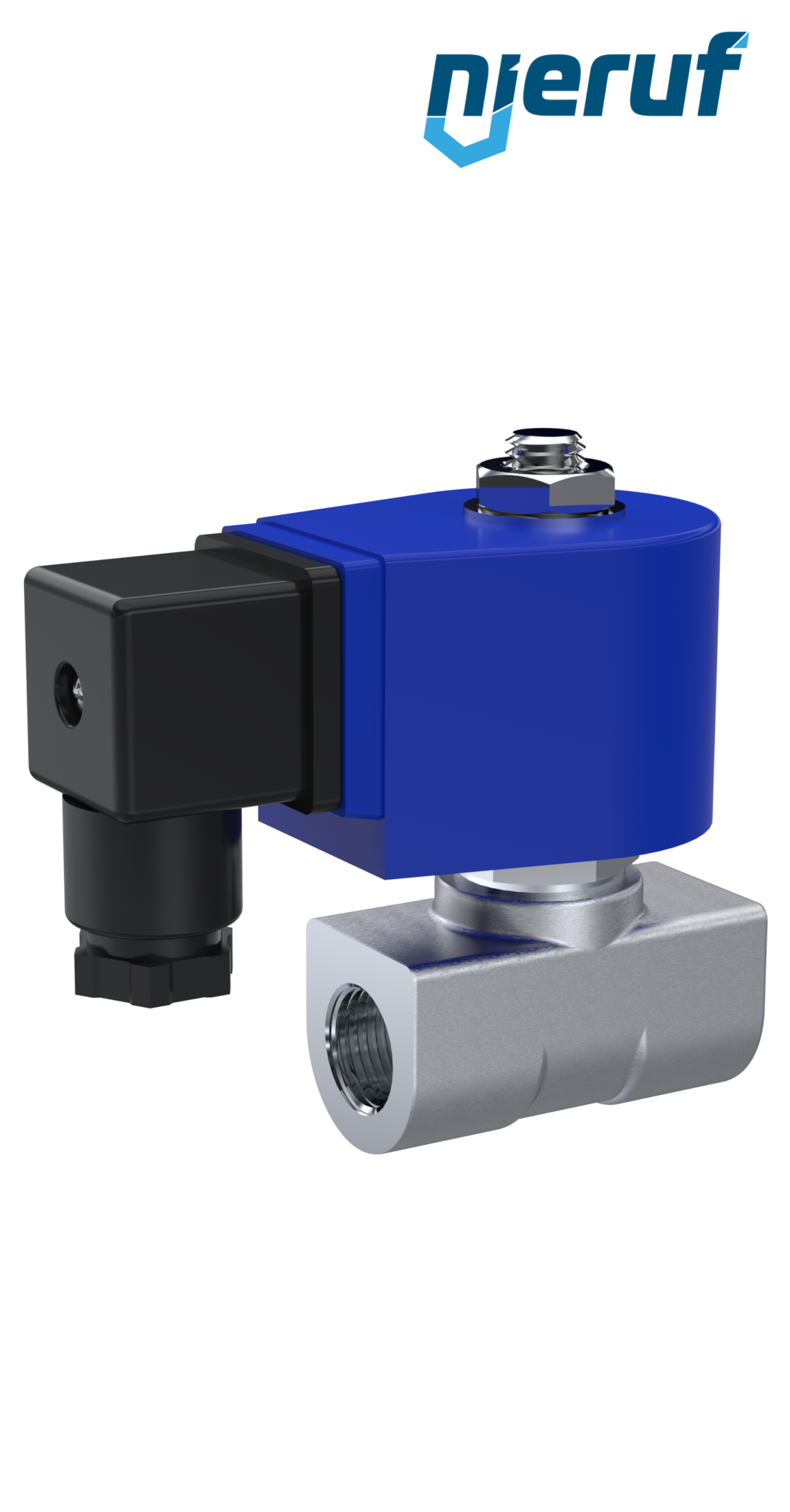 2/2 Ways high pressure solenoid valve G 3/8" Inch made of stainless steel 1.4408 seal EPDM direct operated nominal voltage 24V DC pressure 0.0 - 35 bar