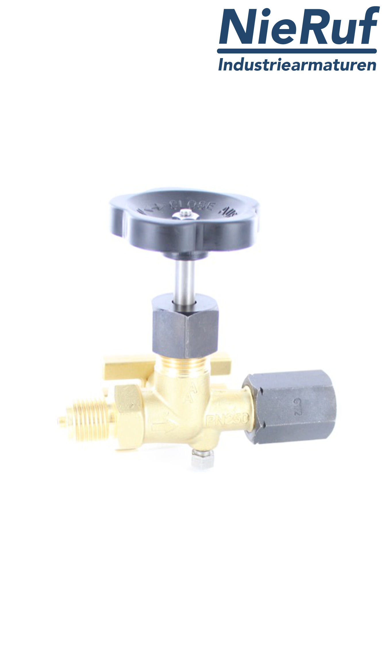 manometer gauge valves male thread x sleeve x test flange 60x25 mm DIN 16271 brass 250 bar