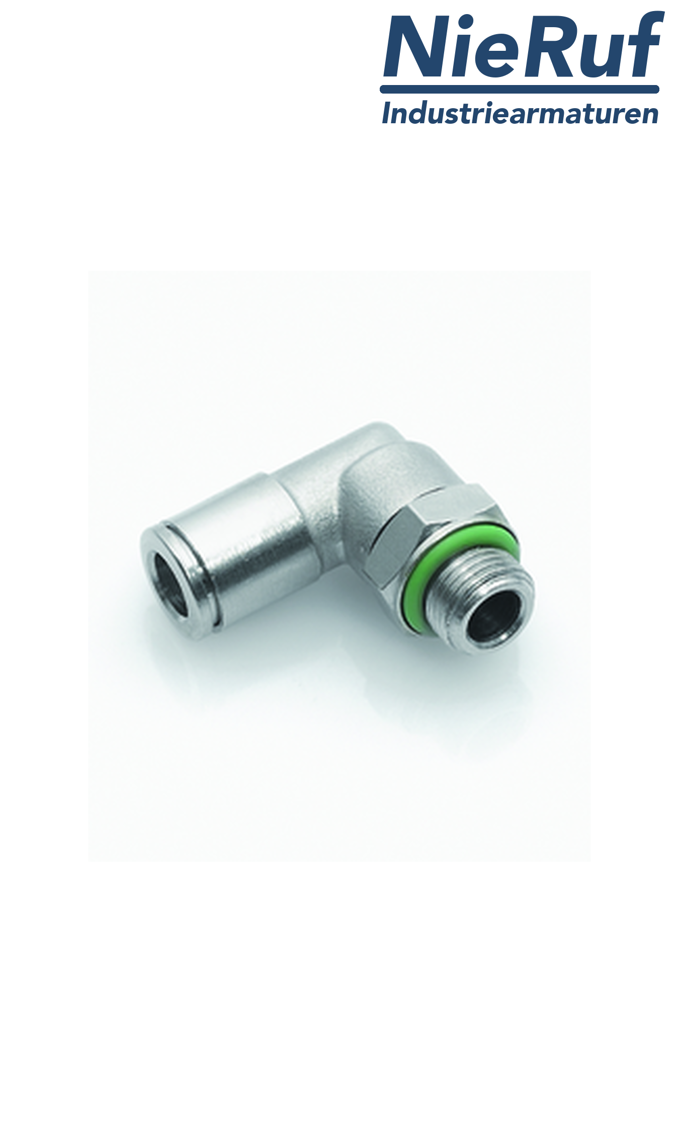 rotary elbow male adaptor parallel to connect or to plug pipes in pneumatic- or pressure air applications.