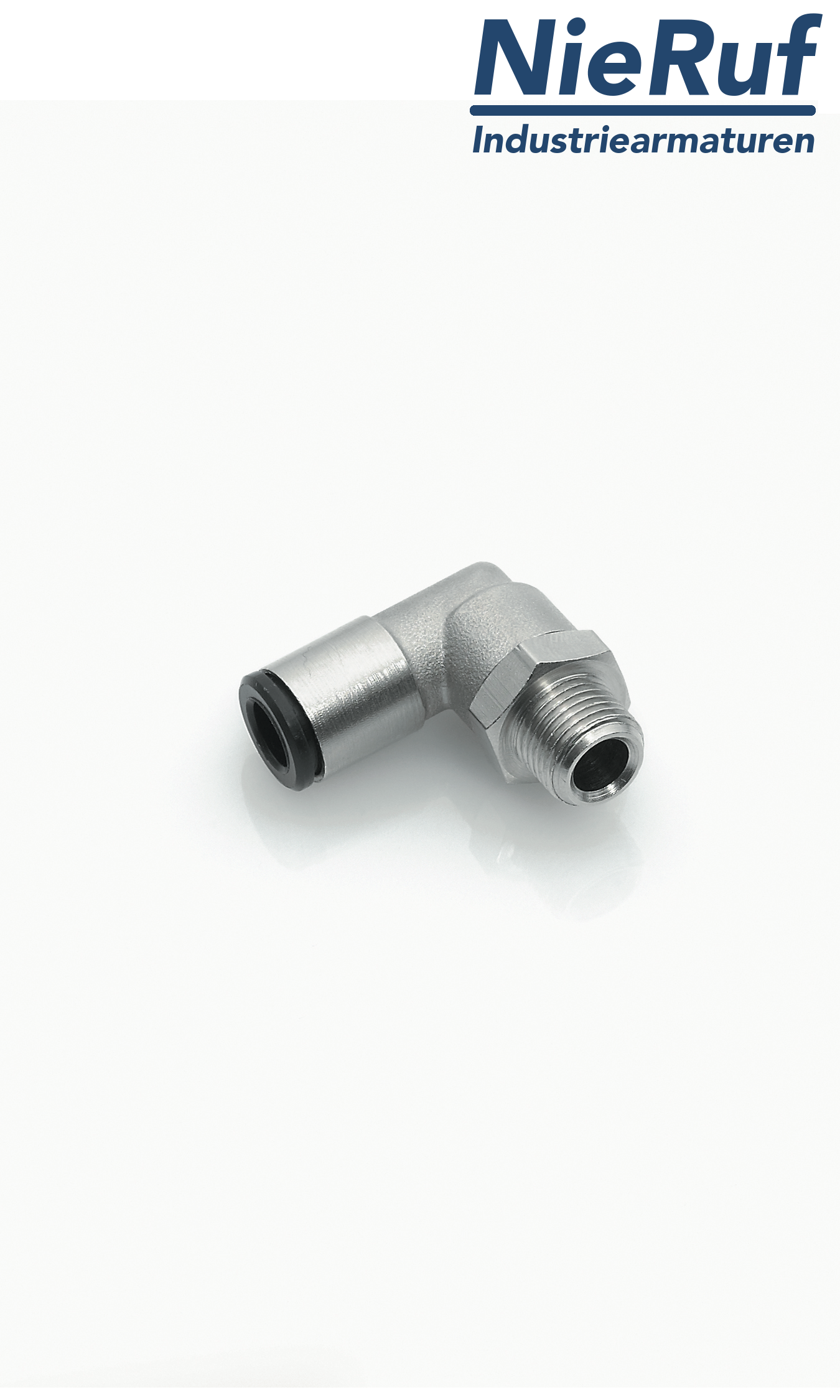 rotary elbow male adaptor parallel to connect or to plug pipes in pneumatic- or pressure air applications.