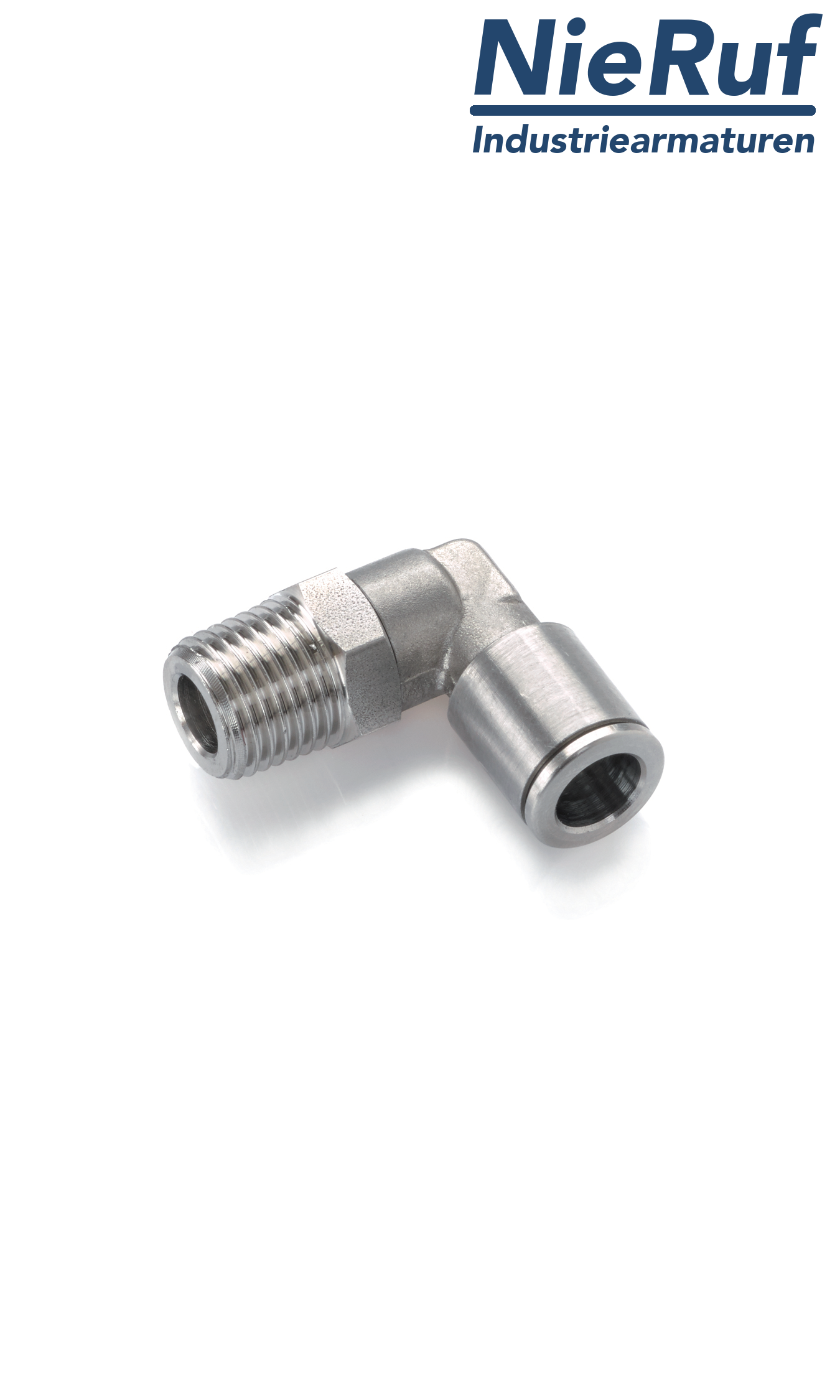 port connection rotary elbow male adaptor parallel made of stainless steel with FKM-seal R1/2" D12mm for lubricated & non-lubricated compressed air up to 16 bar