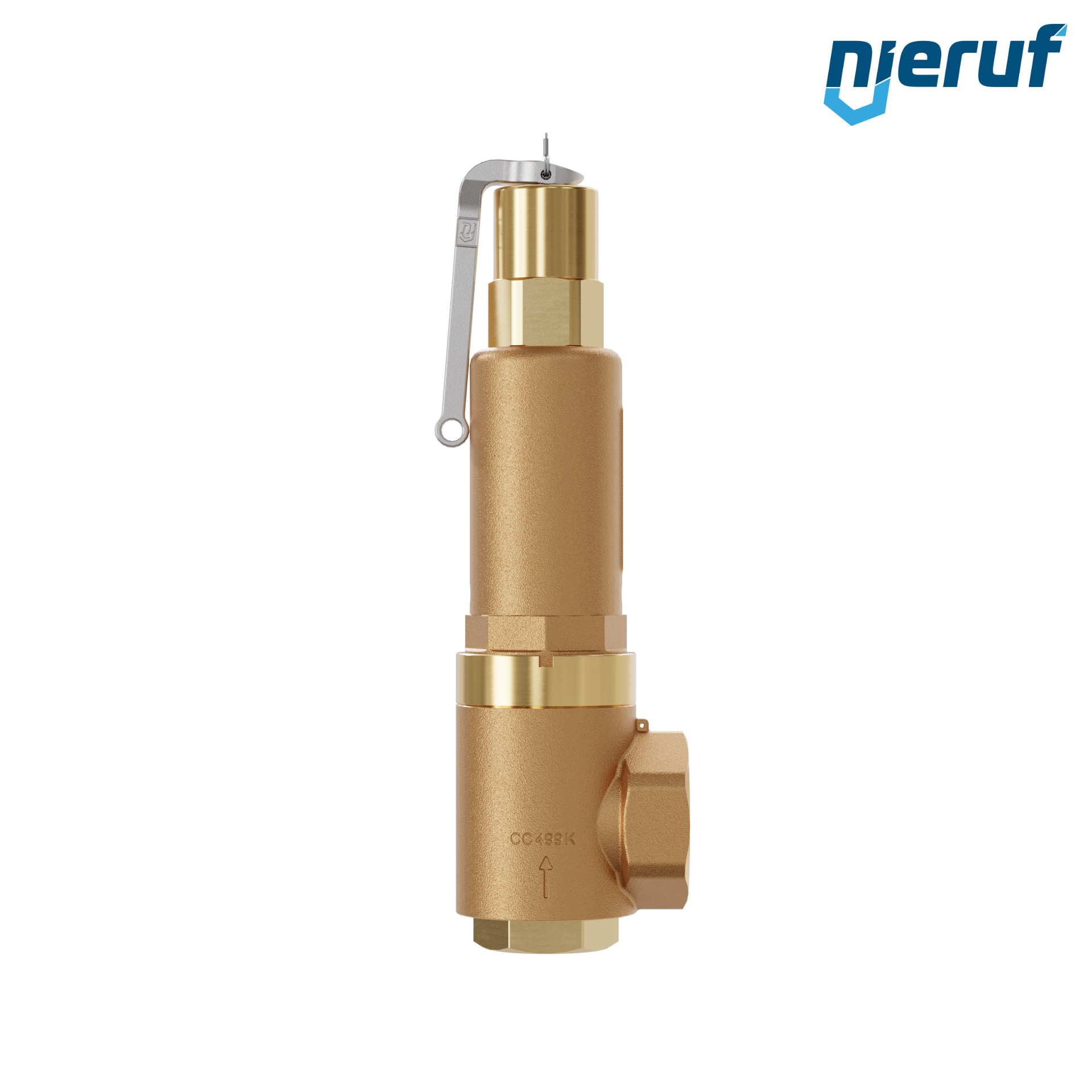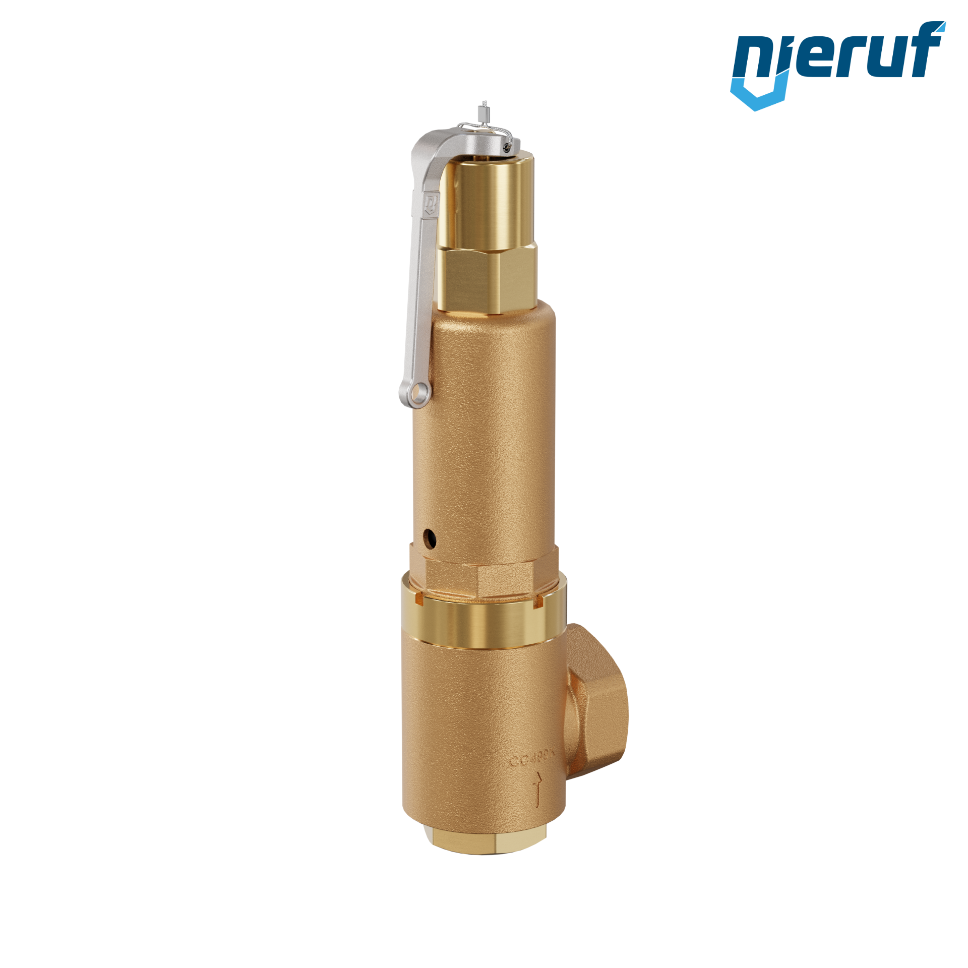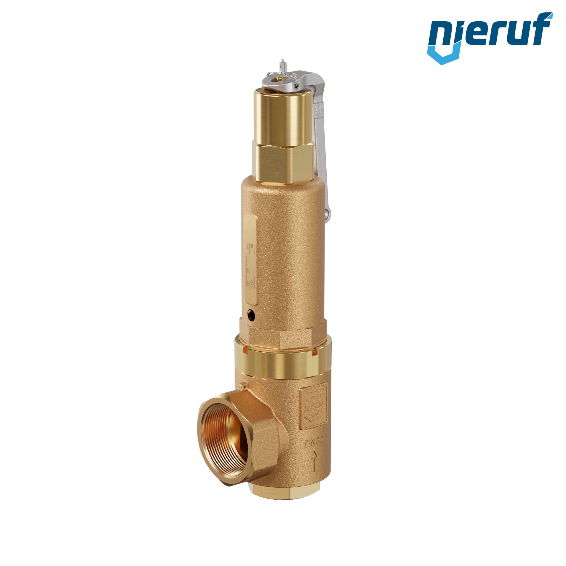 safety valve 1 1/4" x 2" fm SV08 for gaseous media made of gunmetal seal PTFE set pressure 0,5 - 50,0 bar mit with lever