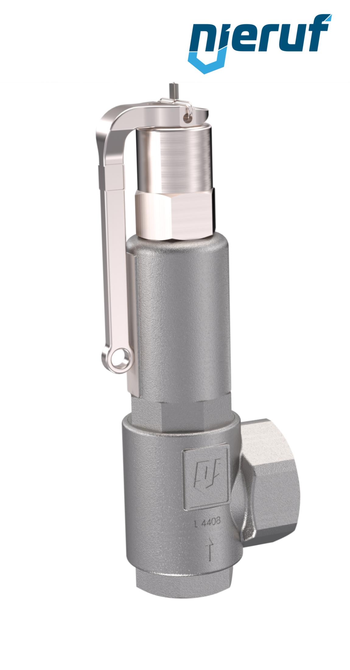safety valve 1/2" x 1" fm SV10 for gaseous media made of stainless steel seal FKM set pressure 0,5 - 25,0 bar- higher pressures possible in PTFE version mit with lever