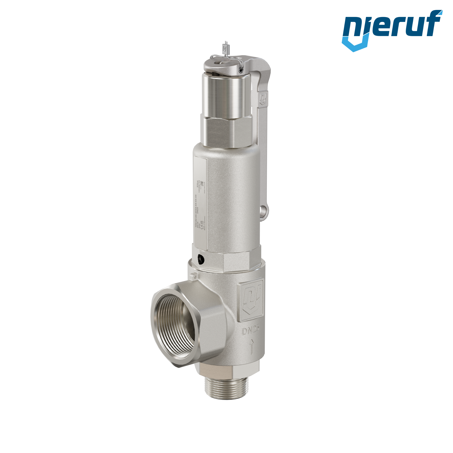 safety valve 1" m x 1 1/2" fm male screw threaded BSP-P SV10 for gaseous media made of stainless steel seal NBR set pressure 0,5 - 25,0 bar- higher pressures possible in PTFE version with lever