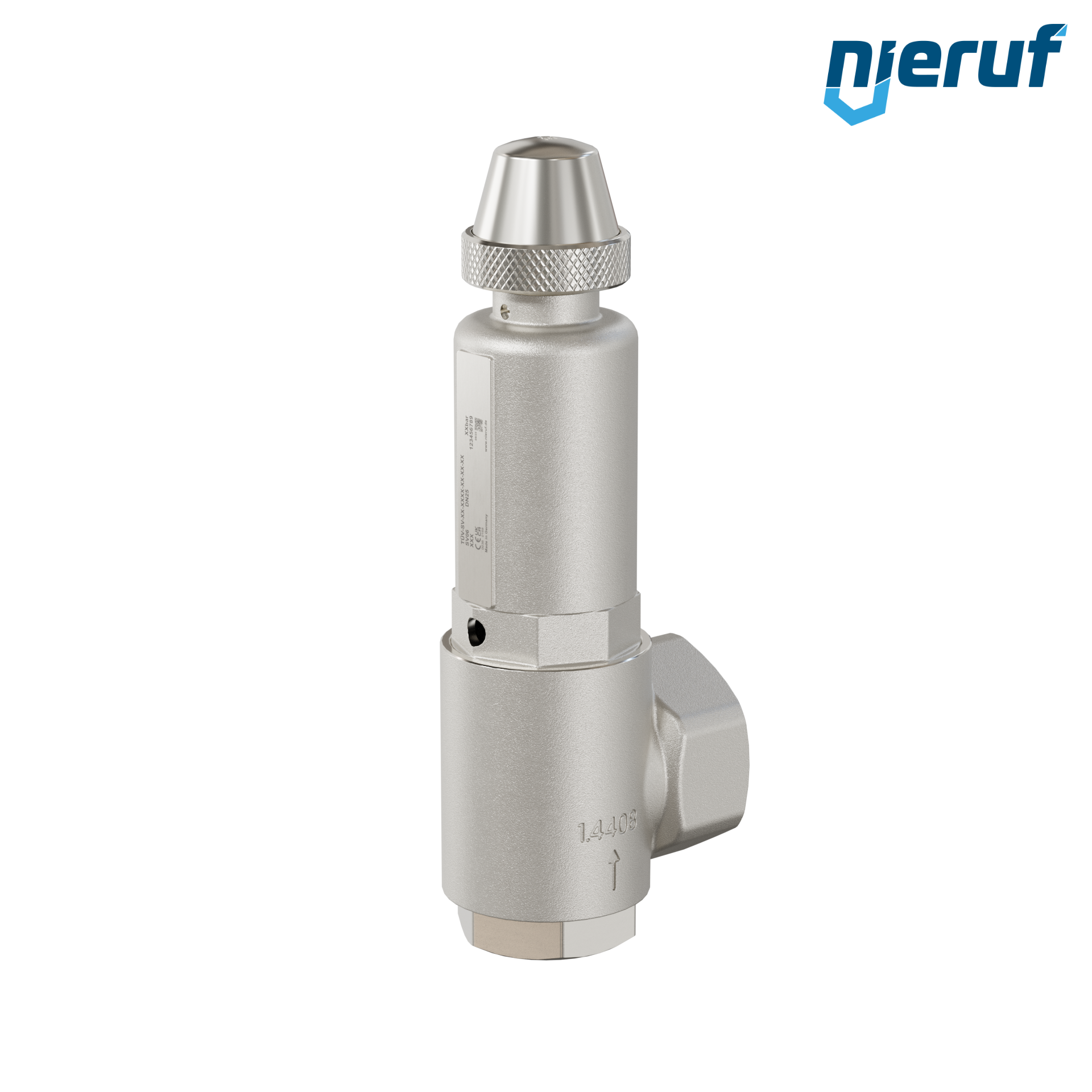 angle-type-safety-valve for liquid media 1" x 1 1/2" fm with with bellows stainless steel Typ SV06 with Female screw threaded BSP-P EPDM-seal and twist-type lifting mechanism