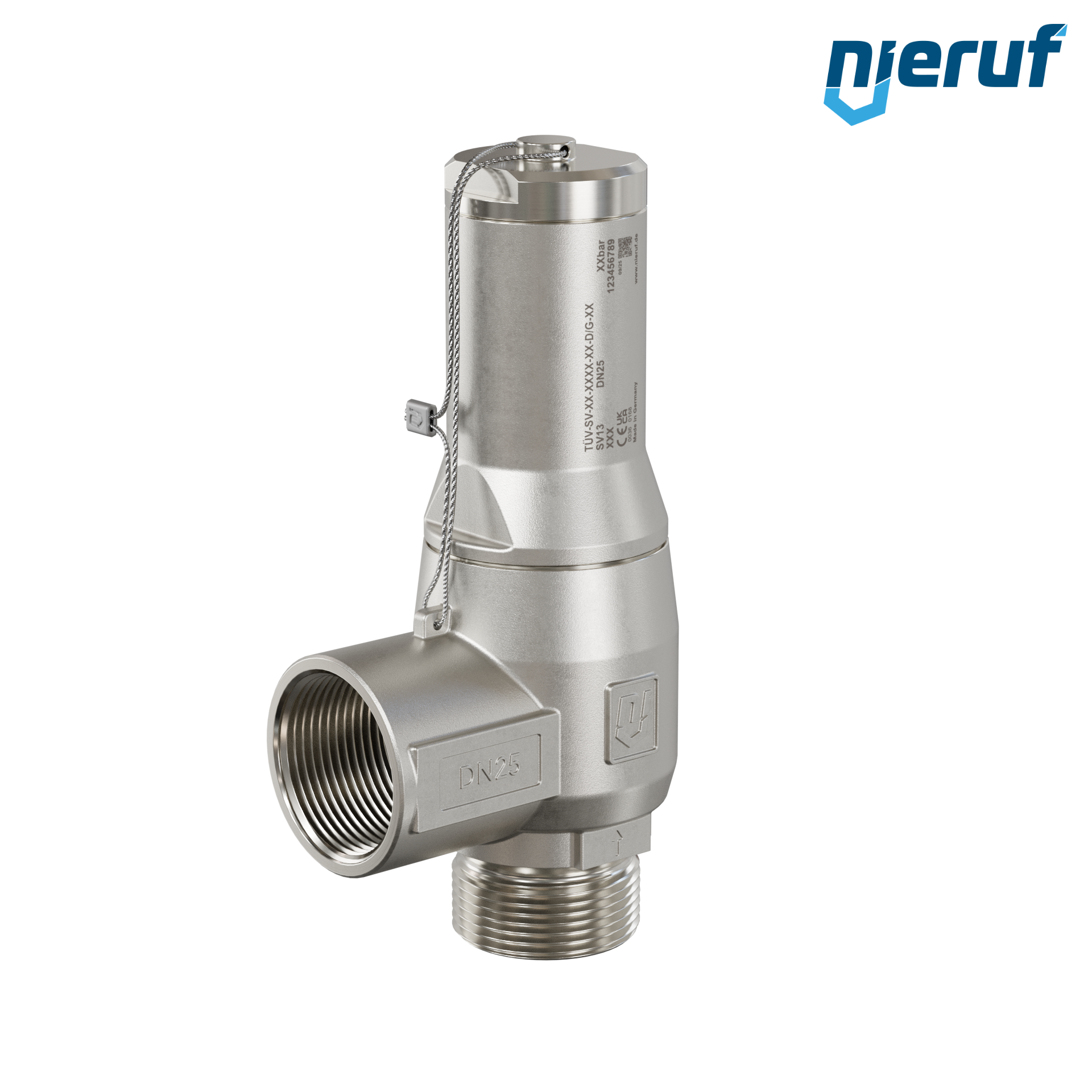safety valve 1" m x 1" fm SV13 for liquid and gaseous media made of stainless steel seal NBR pressure 0,2 - 25,0 bar without lever