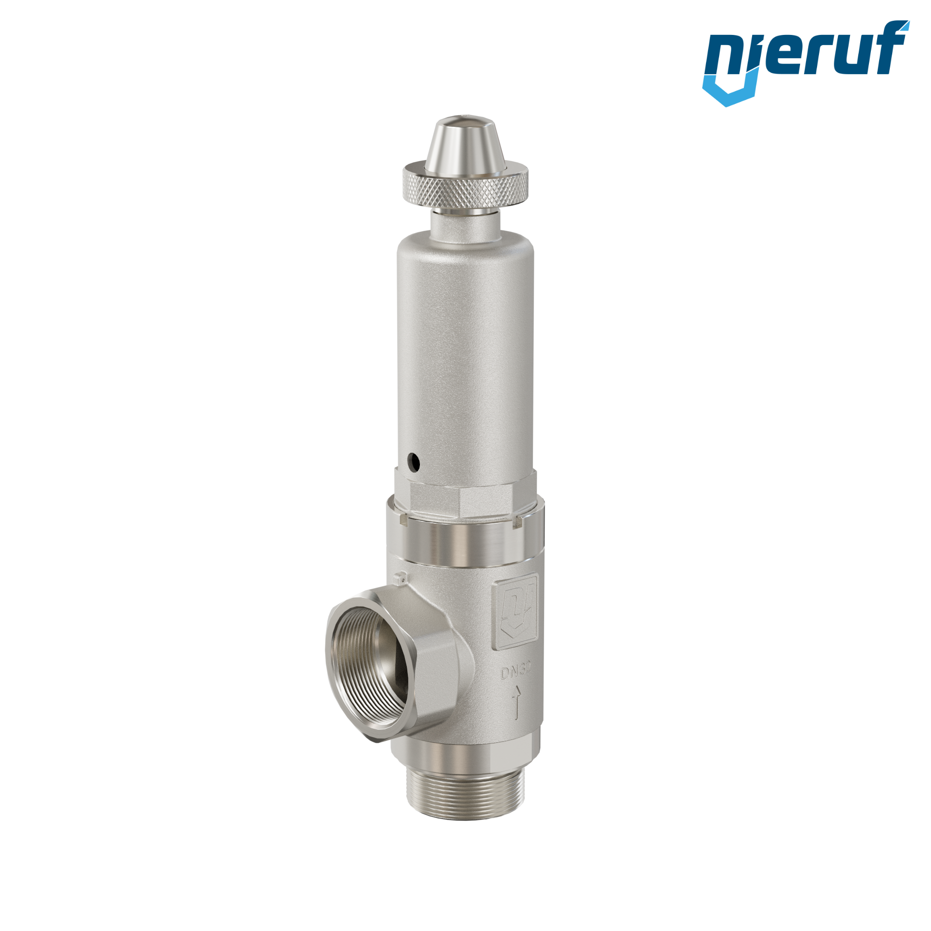 stainless steel-safety valve with with bellows 2" m x 2" fm Typ SV06 with male screw threaded BSP-P PTFE-seal for liquid media with twist-type lifting mechanism